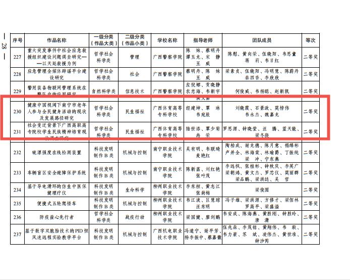 “挑战杯”广西大学生课外学术作品竞赛获奖名单
