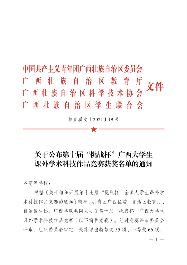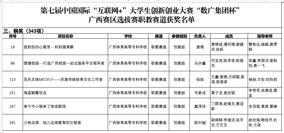 “互联网+”大学生创新创业大赛“数广集团杯”广西赛区获奖名单
