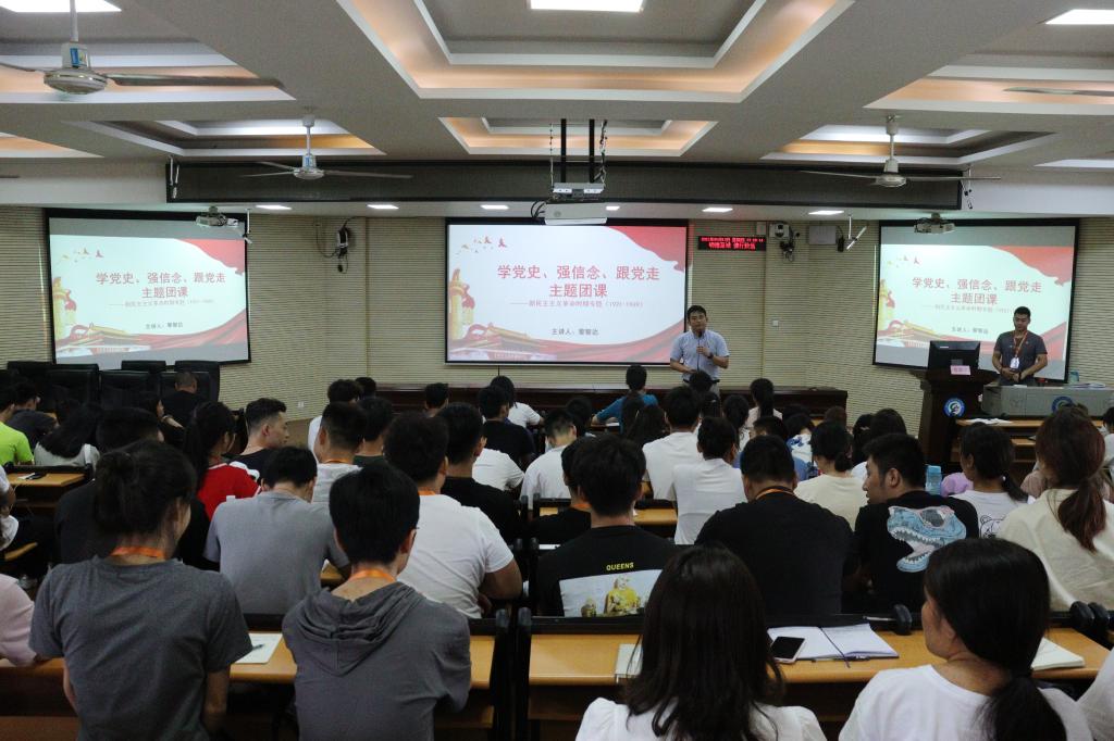 团课上,黎智达书记以新民主主义革命时期为专题,讲述中国共产党的成立、中共一大至中共七大的召开、以及到中华人民共和国成立的全过程,给同学们上了一堂生动的党史学习教育主题团课。