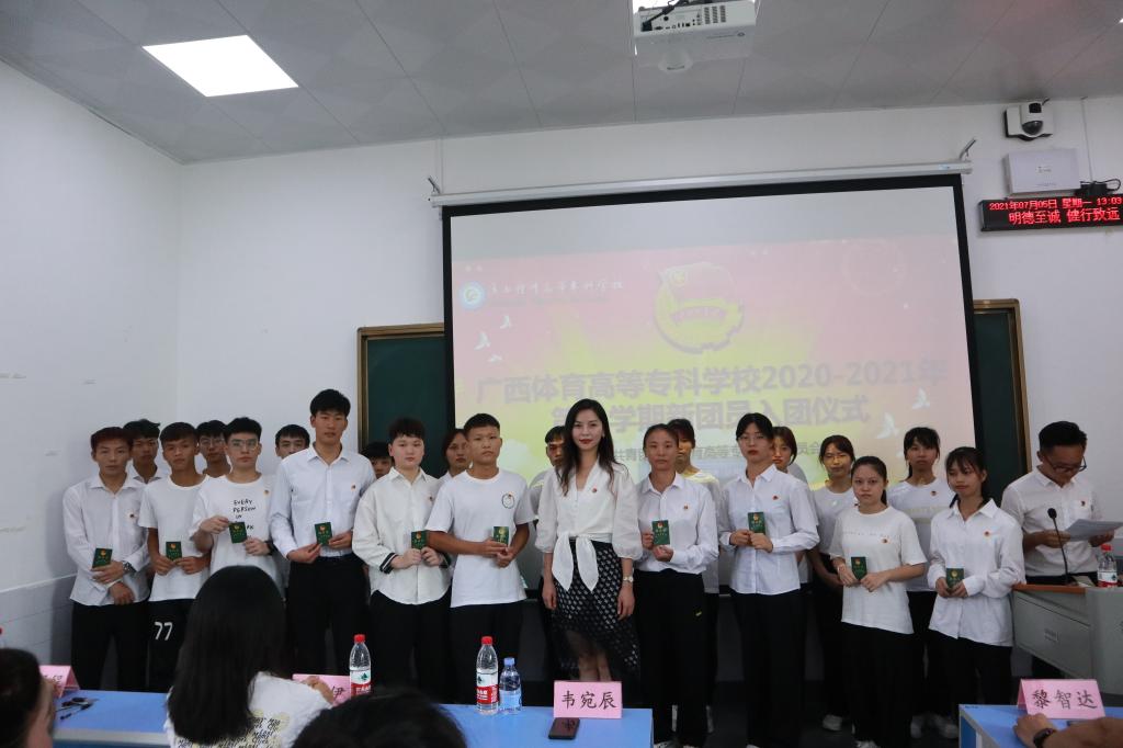 7月5日,在中国共产党百年华诞之际,爱体育电子官方网站于本部校区运动科学与健康学院思政教室隆重举行2020-2021学年第二学期新团员入团仪式。校团委书记黎智达、校团委副书记韦宛辰及校团委委员、各学院团委书记、负责人出席本次仪式。仪式由校团委组织部部长李常军主持。