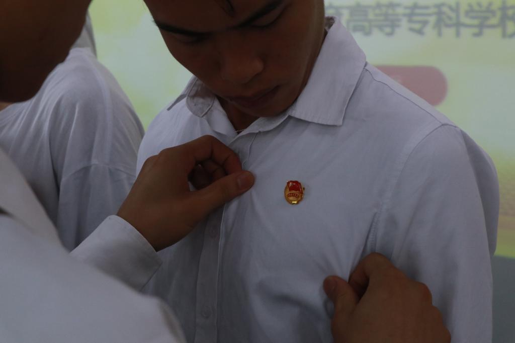 仪式在集体奏唱庄严雄伟的国歌声中开始。主持人首先说明了入团仪式的意义,随后宣布黄文昌、韦宗含、黄明建等34名同学加入团组织,并由老团员代表为他们戴上象征荣誉、责任与义务的团徽。校团委书记黎智达、校团委副书记韦宛辰、体育与教育学院本部校区负责人唐豪杰先后为新团员颁发团员证。新团员在入团仪式中面向团旗进行了庄严的入团宣誓,从此正式成为一名光荣的共青团员。