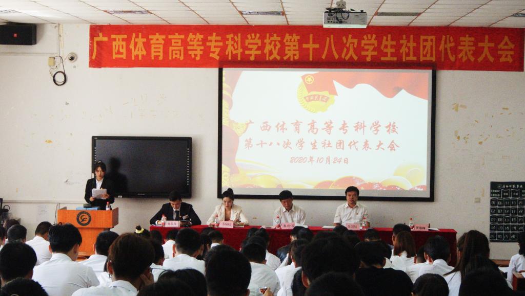 10月24日,爱体育电子官方网站第十八次学生社团代表大会在长岗校区瑞兴楼107教室隆重举行。学生工作处处长韦伦国、团委书记朱国铭、团委副书记韦宛辰及各学院分团委书记出席大会。122名正式代表和32名列席代表正确行使和履行了代表的权利和义务。