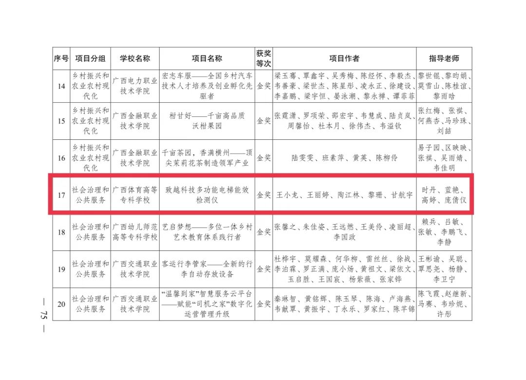 “挑战杯”广西大学生创业计划竞赛获奖名单