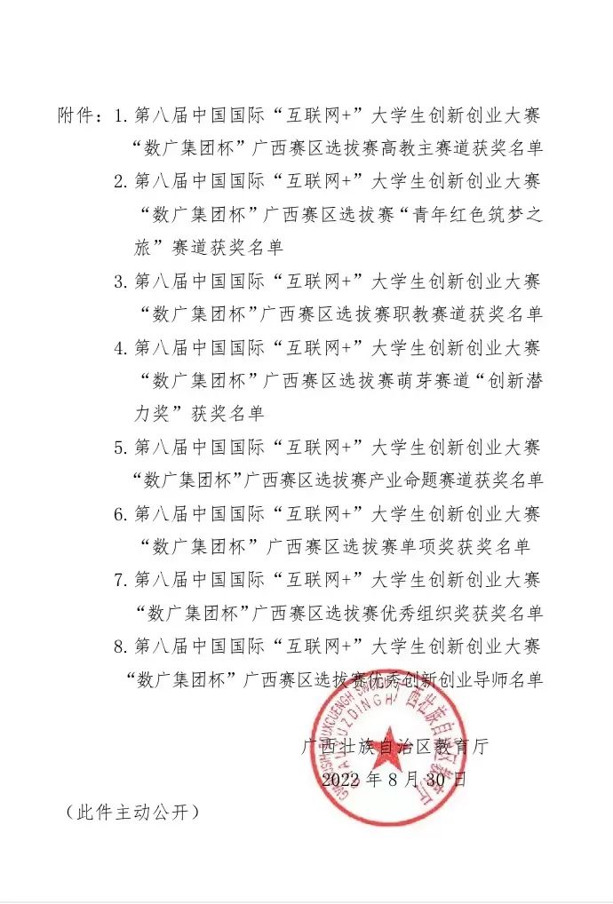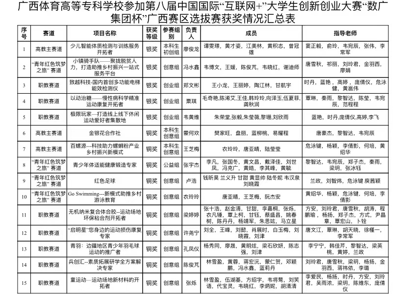 为深入贯彻落实习近平总书记关于教育的重要论述,落实立德树人的根本任务,纵深推进大众创业万众创新,今年5月至7月,自治区教育厅等单位联合举办了第八届中国国际“互联网+”大学生创新创业大赛“数广集团杯”广西赛区选拔赛,爱体育电子官方网站在此次大赛中荣获4银11铜的佳绩。