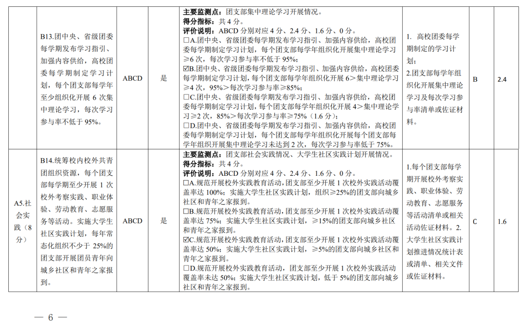 (一)聚焦团的思想引领,按照团中央、省级团委每学期发布学习指引,进一步完善学习计划,加强对基层团支部的指导,力争每学年组织化开展集中理论学习6次以上,每次学习参与率达90%以上;