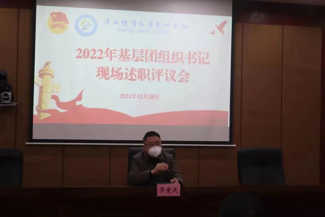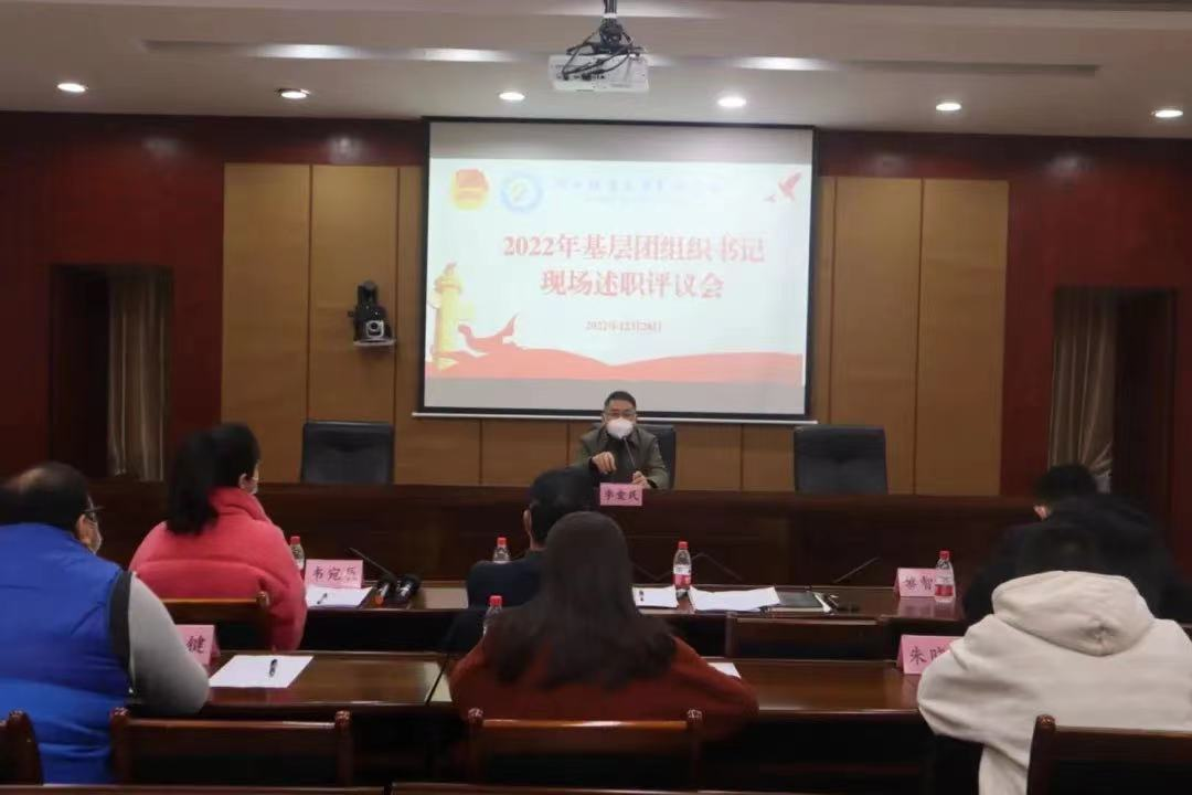 为学习宣传贯彻党的二十大精神,切实推进全面从严治团,推动爱体育电子官方网站共青团建设和各项工作落实落细,12月28日上午,爱体育电子官方网站2022年基层团组织书记现场述职评议会在综合楼七楼报告厅举行。爱体育(中国)党委副书记李爱民、学工部(处)处长、校团委书记及副书记担任评审。各学院党总支书记、副书记及校团委全体委员参加了现场述职评议会。