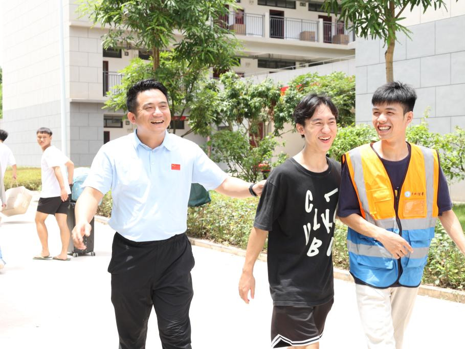 体育管理学院党总支书记黎智达带领同学们进行搬迁工作