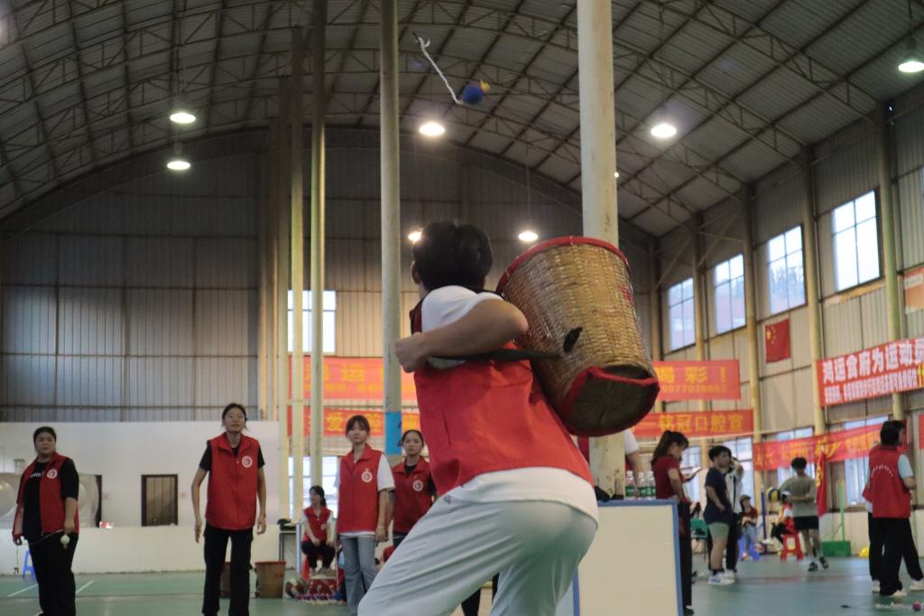 民族体育趣味赛共设有“三人板鞋竞技”“背篓接绣球”“齐心协力同心鼓”“竹竿舞”四个团体趣味比赛项目。赛场上,参赛运动员精神抖擞,全力以赴,各显其能。赛场边,观众热情持续高涨,加油声、欢呼声、呐喊声此起彼伏。大家相互鼓励,不分你我,欢乐融洽的气氛在赛场洋溢。