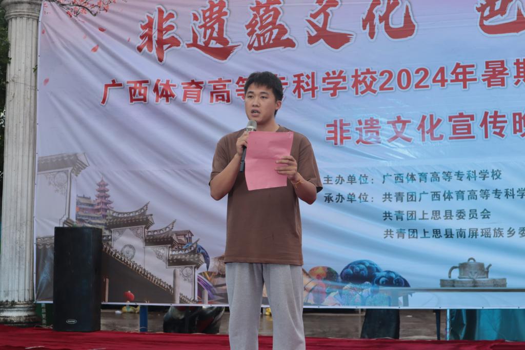 民族精神与文化交融的竞技舞台:中华文化传承团与上思县团委、上思县青年志愿者学会共同开展了一场充满活力与文化魅力的民族体育趣味赛。爱体育电子官方网站团委范程程老师在比赛开始前做动员:希望两队成员通过趣味赛发挥沟通、联络友谊、加强团结,共同感受民族体育的魅力。