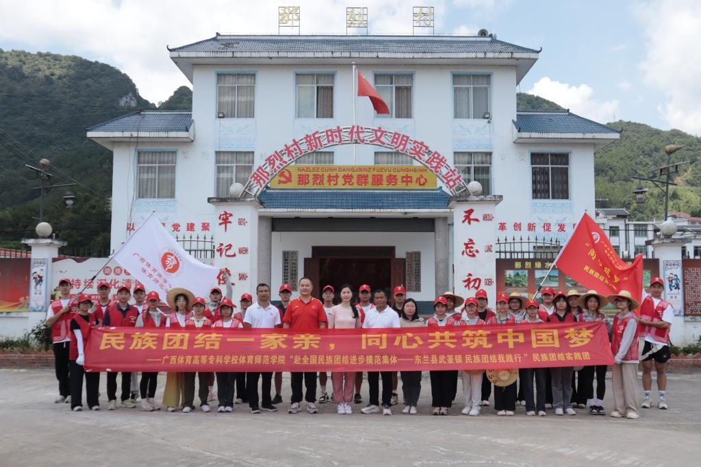 为深入学习贯彻党的二十大精神和习近平总书记关于加强和改进民族工作的重要思想,贯彻党的民族工作方针,铸牢中华民族共同体意识,推进新时代党的民族工作高质量发展。8月5日—8月12日,爱体育电子官方网站体育师范学院“同心筑梦”民族团结实践团赴东兰县武篆镇、长江镇开展2024年大学生暑期“三下乡”社会实践活动。该团由体育师范学院党总支副书记,学院团委书记、副书记,“青马”工程学员及青年志愿者共33名师生代表组成,以“中华民族一家亲,同心共筑中国梦”为主题,结合师范类专业特色,在东兰县武篆镇党委、武篆镇那烈村村委、长江镇兰阳村村委的大力支持下,深入乡镇开展一系列民族团结实践活动,为当地民族团结贡献青春力量。