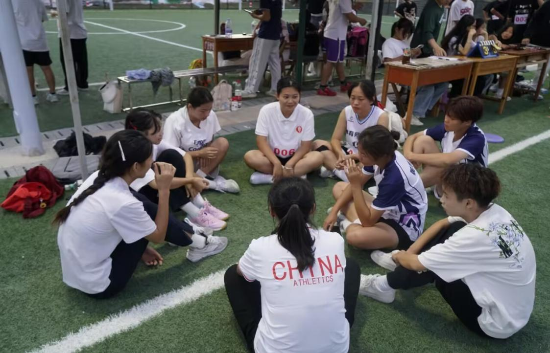 飞盘比赛中“支部队”组织队员们讨论战术