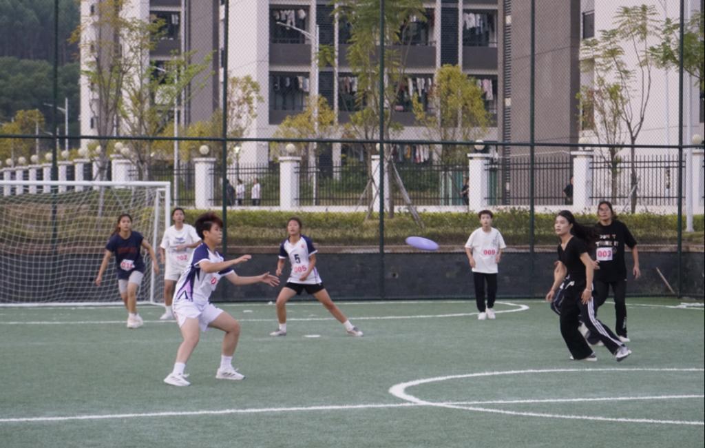 赛场上,同学们尽情奔跑、跳跃,默契地传接飞盘,展现出了顽强的拼搏精神和出色的团队协作能力。赛后,同学们纷纷感慨:“这场比赛对团队的默契程度和配合能力是极大的考验,既刺激又有趣!”比赛队员专业的技巧和默契的配合赢得了场下拉拉队的阵阵掌声,展现了师范专业同学在体育领域的才能,同时也加深了班级团支部和校级学生组织的友谊和团结。