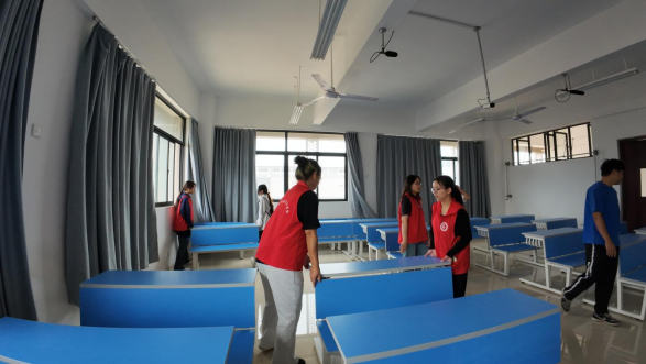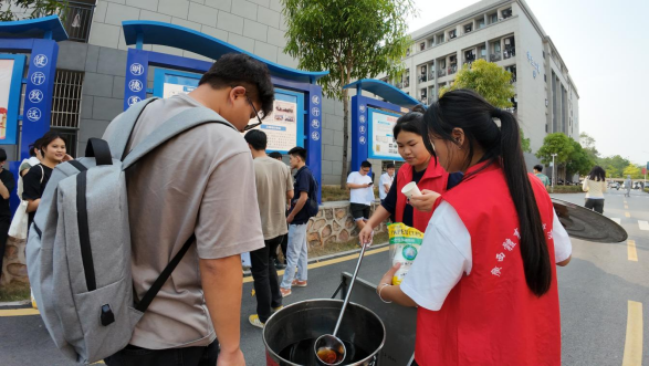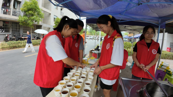 活动期间志愿者们各司其职,用实际行动传递关怀与温暖。有的志愿者早早来到校园入口,像春日里的风向标,为前来考试的师兄师姐们指引方向;有的志愿者精心准备了充足的饮用水和凉茶,在休息区为考生们递上一杯杯清凉,滋润着考生们的心灵,缓解他们考前的焦虑;还有的志愿者深入考场,提前营造舒适的环境,宛如贴心的家人,默默为考生们提供后勤保障。