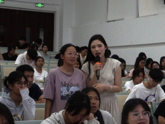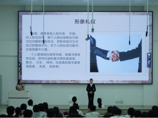 理论学习结束后,课程随即进入模拟礼仪场景的实操教学环节,结合校园、职场等真实场景,现场演示礼仪规范的标准动作与细节,针对同学们的实际表现逐一纠正不足。在知识抢答环节中,大家踊跃举手、争相作答,现场气氛热烈高涨,充分展现出同学们对礼仪知识的浓厚兴趣与积极进取的学习热情。