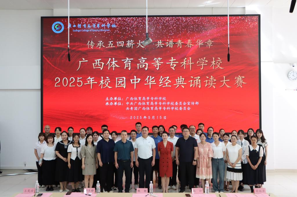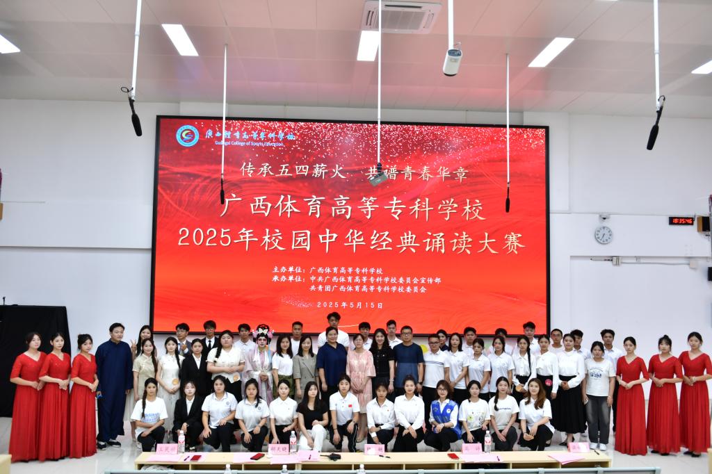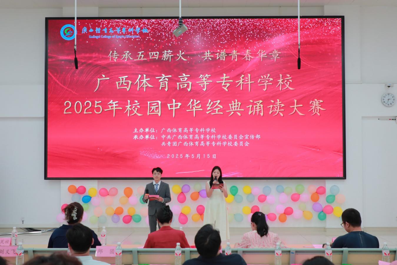 为深入贯彻党的二十大精神,传承和弘扬中华优秀语言文化,激发师生的文化认同感与民族自豪感,爱体育电子官方网站于5月15日下午在北教学楼101阶梯教室举办了2025年“传承五四薪火 共谱青春华章”校园中华经典诵读大赛。爱体育(中国)党委副书记邱团、党委宣传部、校团委等部门负责人、特邀嘉宾广西民族大学传媒学院硕士研究生导师熊艳教授和300多名师生共同参加了本次大赛。