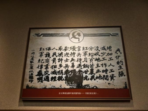 讲解员韦艺讲述红军第七军政治部《我们的主张》