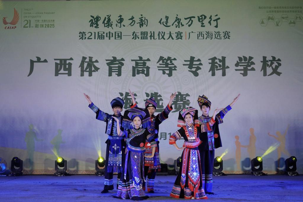 比赛现场,选手们在礼仪展示、才艺表演和晚礼服展示三个环节中大放异彩。在礼仪展示环节,他们身姿挺拔、仪态优雅,举手投足间尽显标准仪态,运用优雅的肢体语言诠释了对中国—东盟礼仪文化的深刻理解;