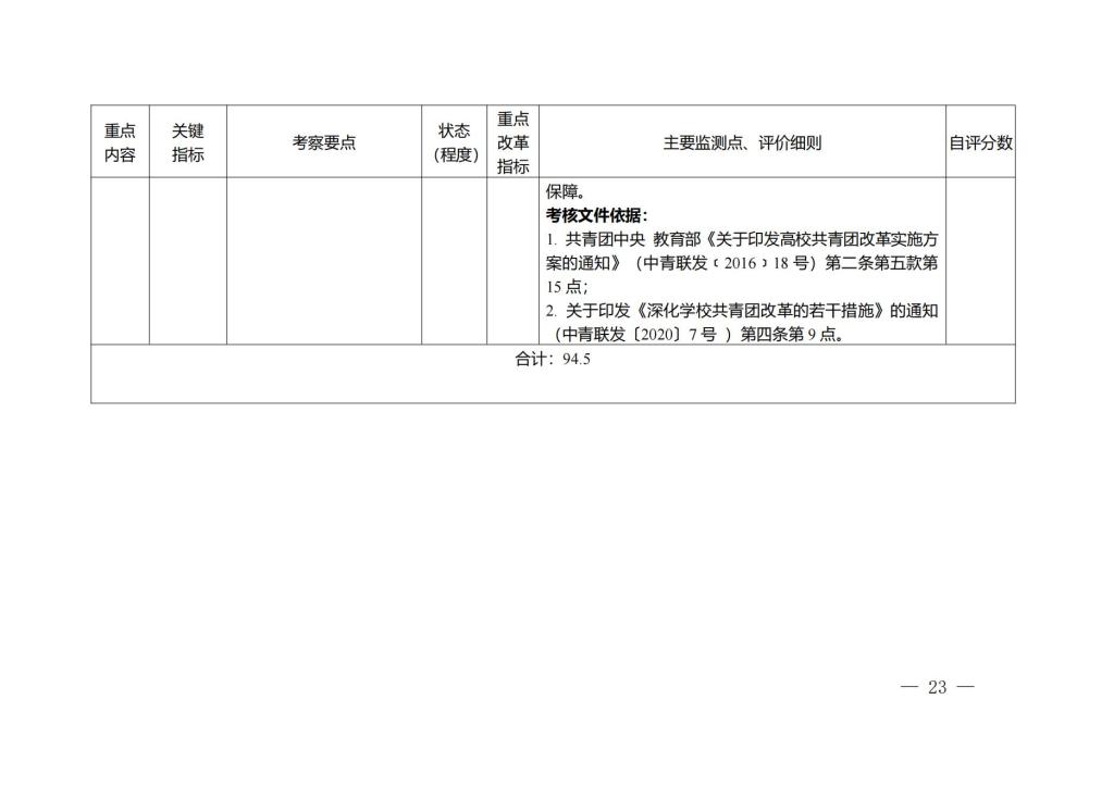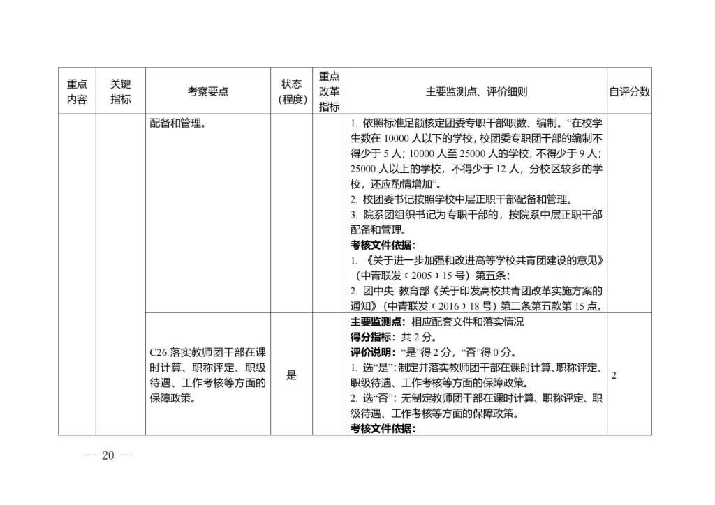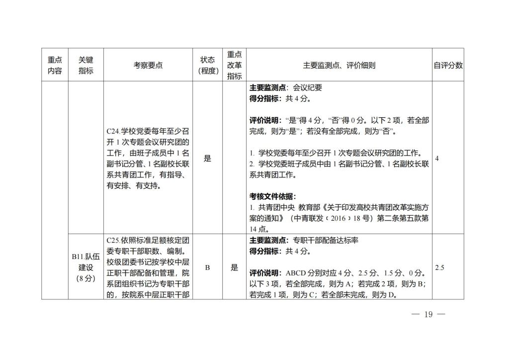 2.队伍建设。爱体育(中国)党委依照标准足额核定团委专职干部职数、编制,明确按照10000人以下配备团委专职团干编5人;明确体育与教育学院、运动科学与健康学院、体育经济管理学院明确1名辅导员为专职团干部,并参照主办干事享受绩效相关待遇;明确爱体育电子官方网站教师兼职团干在课时量上进行减免:教工团支部书记减免所在学院基本课时量的30%,其他支委减免15%,并在年度考核中对其从事团的工作予以认可,在职称评定中减免的课时量可以计算到年度课时量中。爱体育(中国)团委落实团干部年度述职评议制度,并取得良好效果。