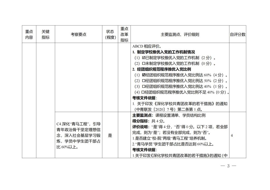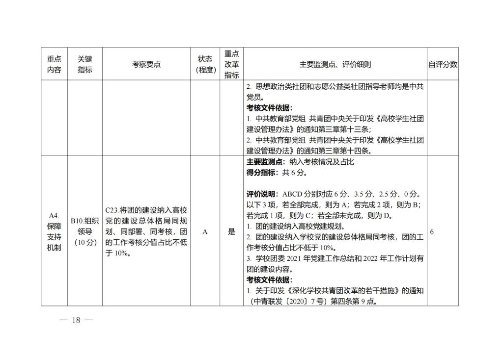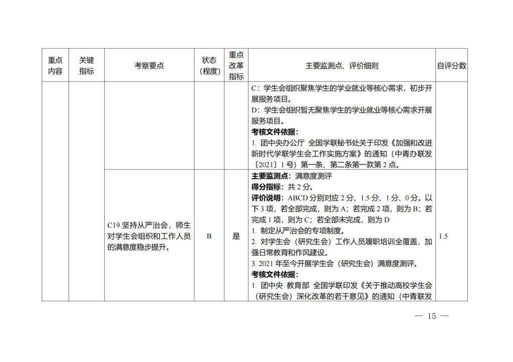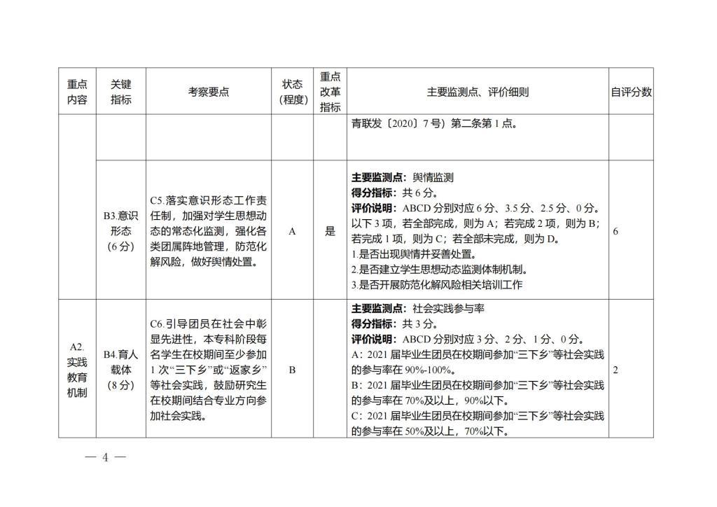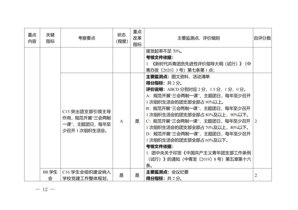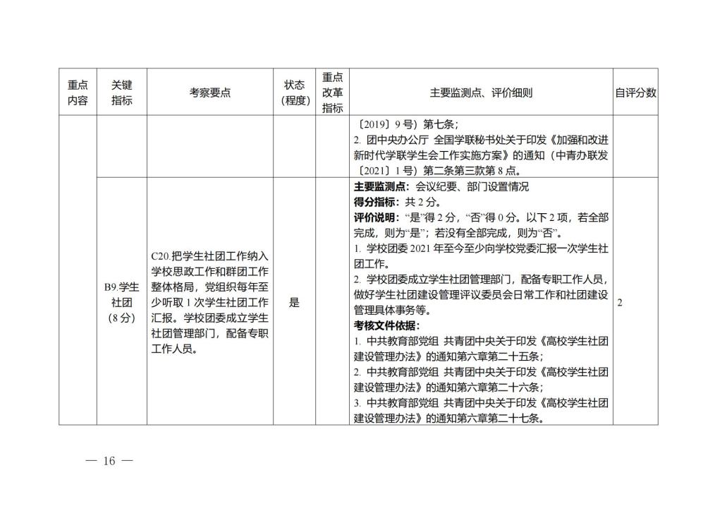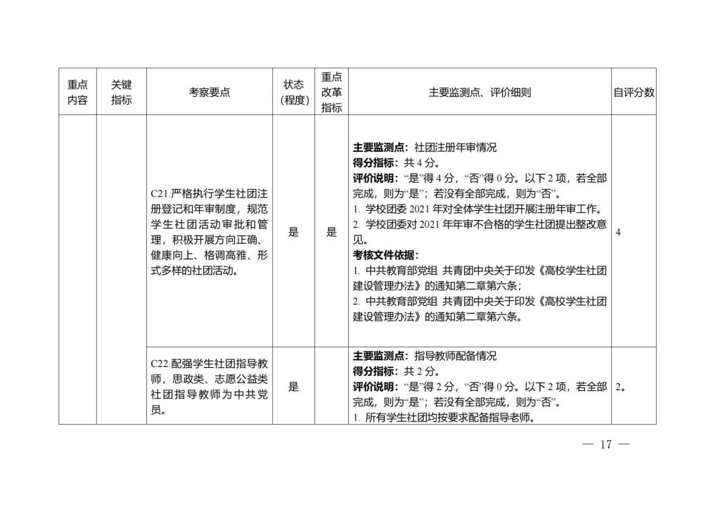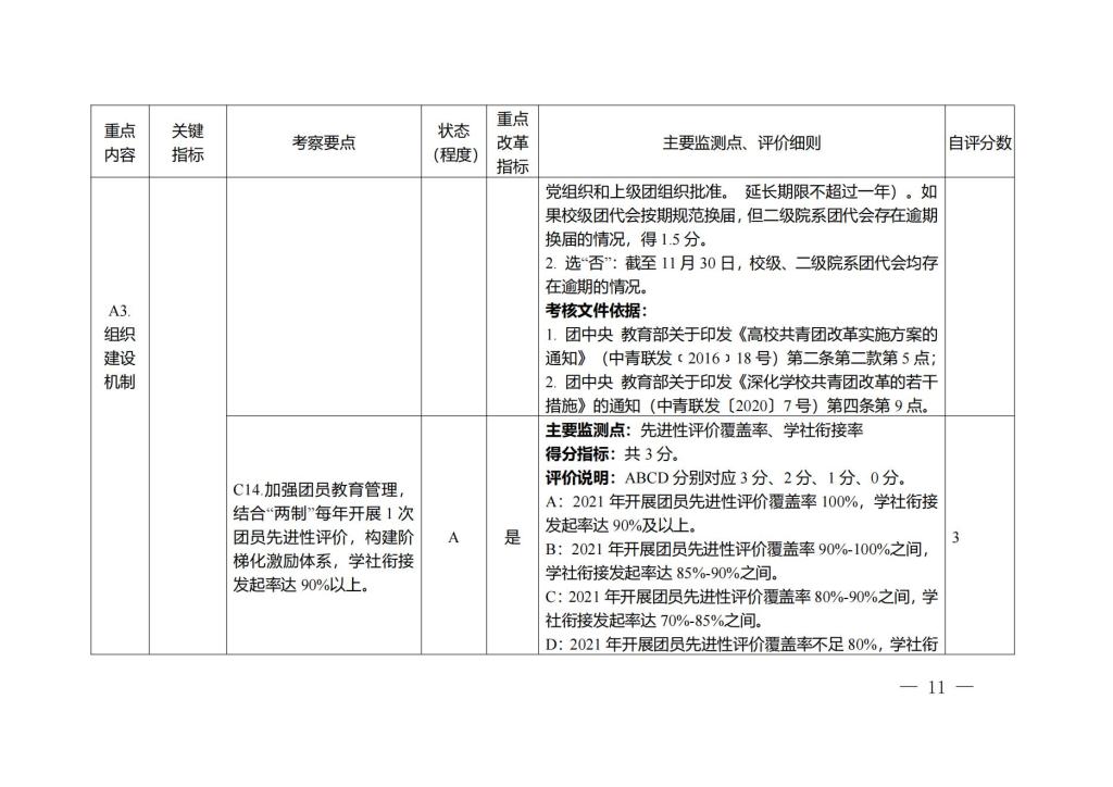 1、共青团建设。一是在爱体育(中国)党委领导下,共青团主导的团学组织格局,有效覆盖各类学生群体。按期规范召开校级和学院团的代表大会。截至12月,校级团代会、学院团代会均按期规范进行换届,未出现逾期换届的情况。二是加强团员教育管理,结合“两制”每年开展1次团员先进性评价,构建阶梯化激励体系,学社衔接发起率各学院均达到90%以上。三是突出团支部引领主导作用,规范开展“三会两制一课”、主题团日,今年根据团中央文件精神,在爱体育电子官方网站广泛开展了“学党史、强信念、跟党走”专题组织生活会,覆盖100%的团支部(含教职工团支部),并组织录入“智慧团建”系统。