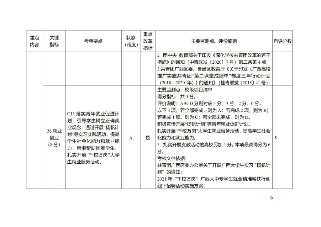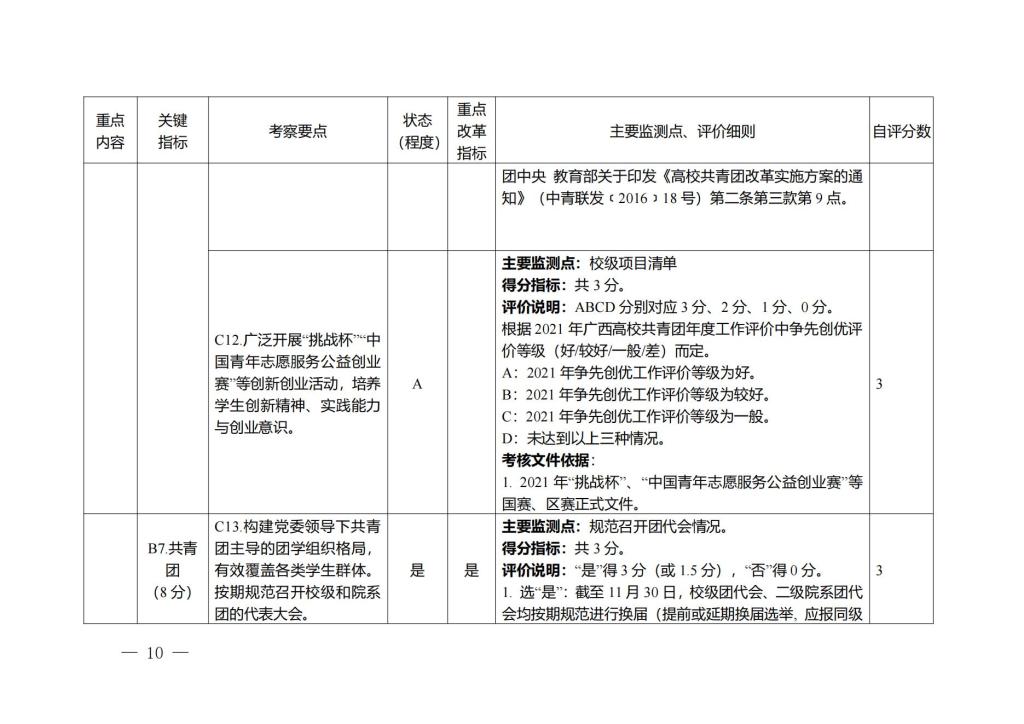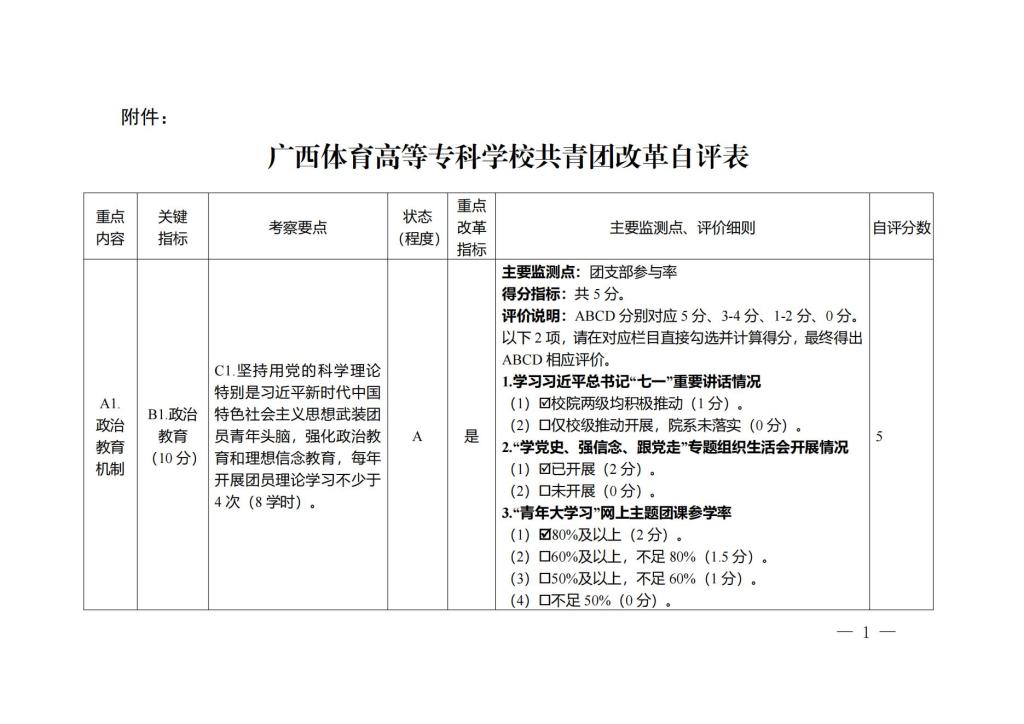 根据共青团广西区委《转发团中央< 爱体育(中国)共青团改革评价实施方案>的通知》的有关要求,爱体育电子官方网站团委对共青团改革的有关情况进行自评,经爱体育(中国)党委研究通过,现将爱体育电子官方网站共青团改革自评情况公开如下。