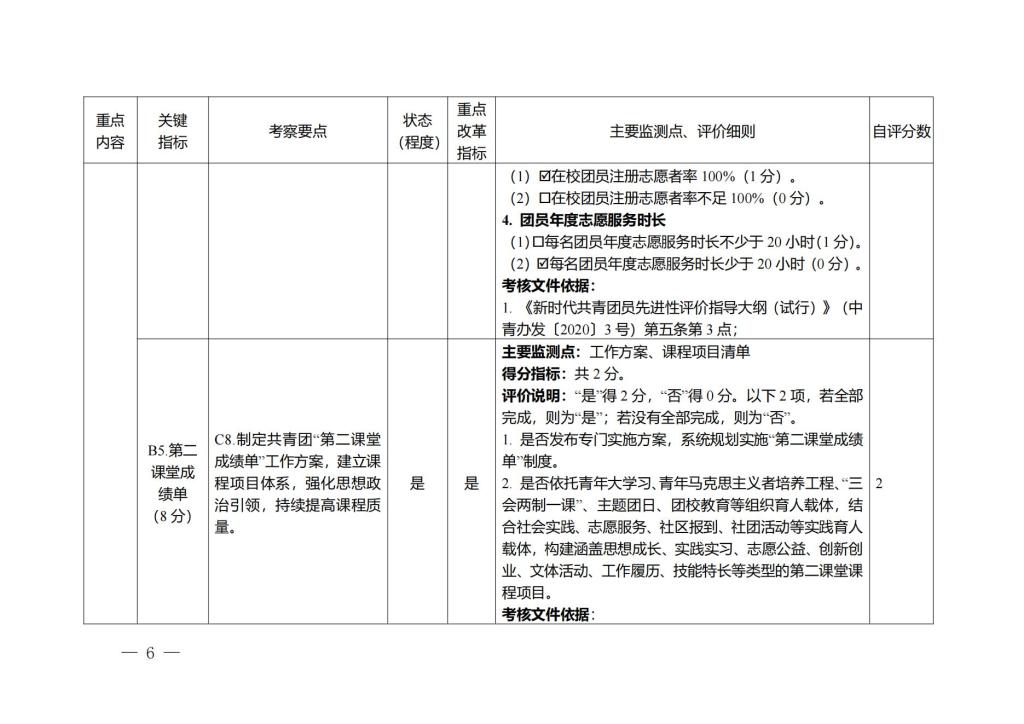2.第二课堂成绩单。一是制定共青团“第二课堂成绩单”工作方案,建立课程项目体系,强化思想政治引领,持续提高课程质量。制定《爱体育电子官方网站专科生第二课堂素质教育学分管理办法》、《爱体育电子官方网站专科生第二课堂竞赛管理办法》,系统规划实施“第二课堂成绩单”制度。二是依托青年大学习、青年马克思主义者培养工程、“三会两制一课”、主题团日、团校教育等组织育人载体,结合社会实践、志愿服务、社区报到、社团活动等实践育人载体,构建涵盖思想成长、实践实习、志愿公益、创新创业、文体活动、工作履历、技能特长等类型的第二课堂课程项目。三是将“第二课堂成绩单”纳入学生综合素质评价、评奖评优、升本等评价推荐工作的考察内容或评价指标;将“第二课堂成绩单”作为发展团员、推优入党等工作的重要参考或测评指标,为政治录用和人才举荐提供科学依据和实践支撑;推动将“第二课堂成绩单”纳入学生档案,作为学生综合素养和能力素质的有效证明。