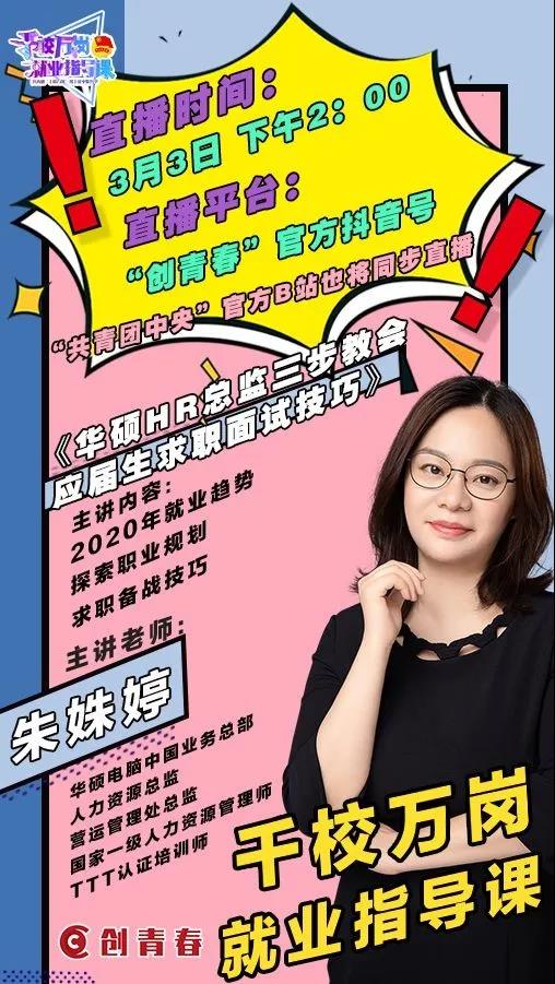 第一场是“千校万岗·就业指导课”,抖音直播课。开场时间:3月3日,下午2:00
