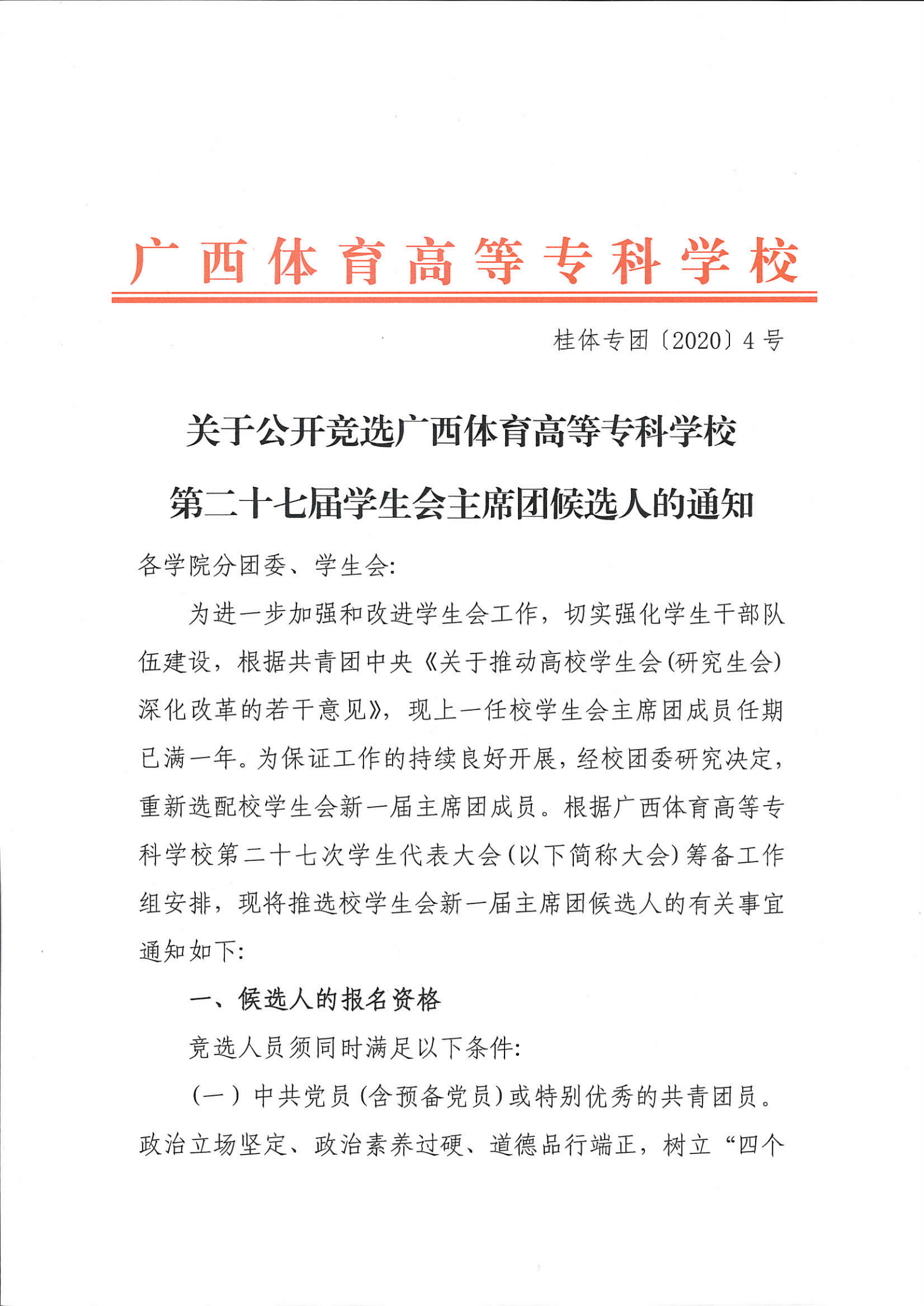 (四)学院学生代表大会在学院党组织领导下,在校学生会与学院团组织的具体指导下召开,召开前须经由学院党总支批准、校学生会批复,按照规范程序召开大会。学院学生代表大会每年举行一次。