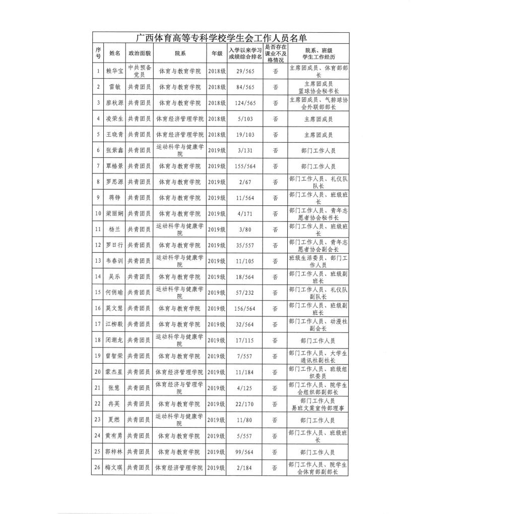 (二)学生会工作人员应当是学有余力、学业优良的学生,最近1个学期或学年学习成绩综合排名均在本专业前30%以内,且无课业不及格情况;