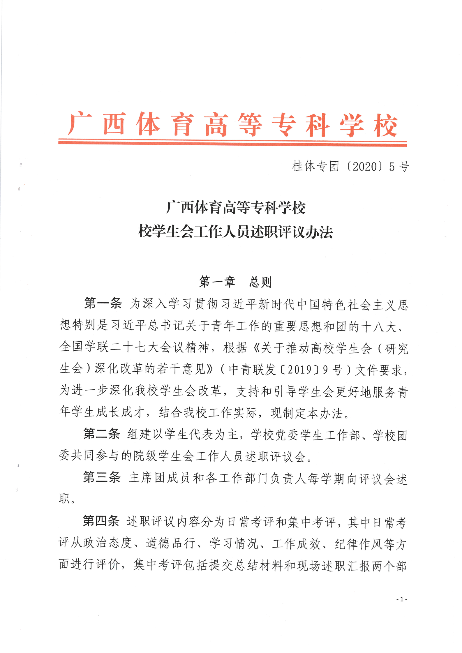 第二十一条建立主要学生干部向学生会进行工作述职、民主评议制度,考核结果作为学生干部任职的必要条件之一。