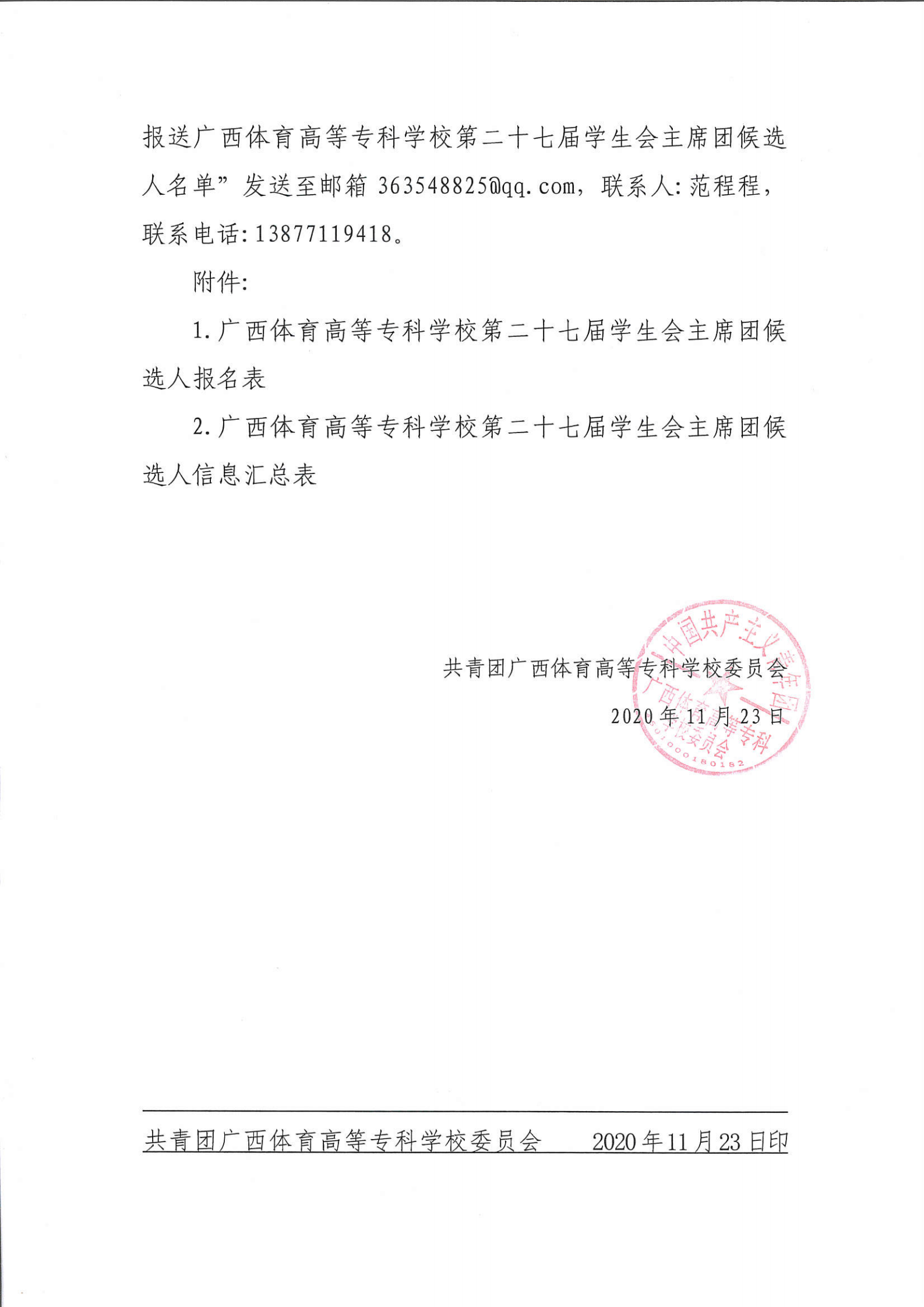 (四)全面推进素质教育,根据体育院校的特点,开展健康有益、丰富多彩的思想道德、科技创新、文化体育、社会实践、志愿服务等活动,帮助同学们丰富第二课堂生活,培养和提高同学们的综合素质,努力为同学们成长、成才服务;