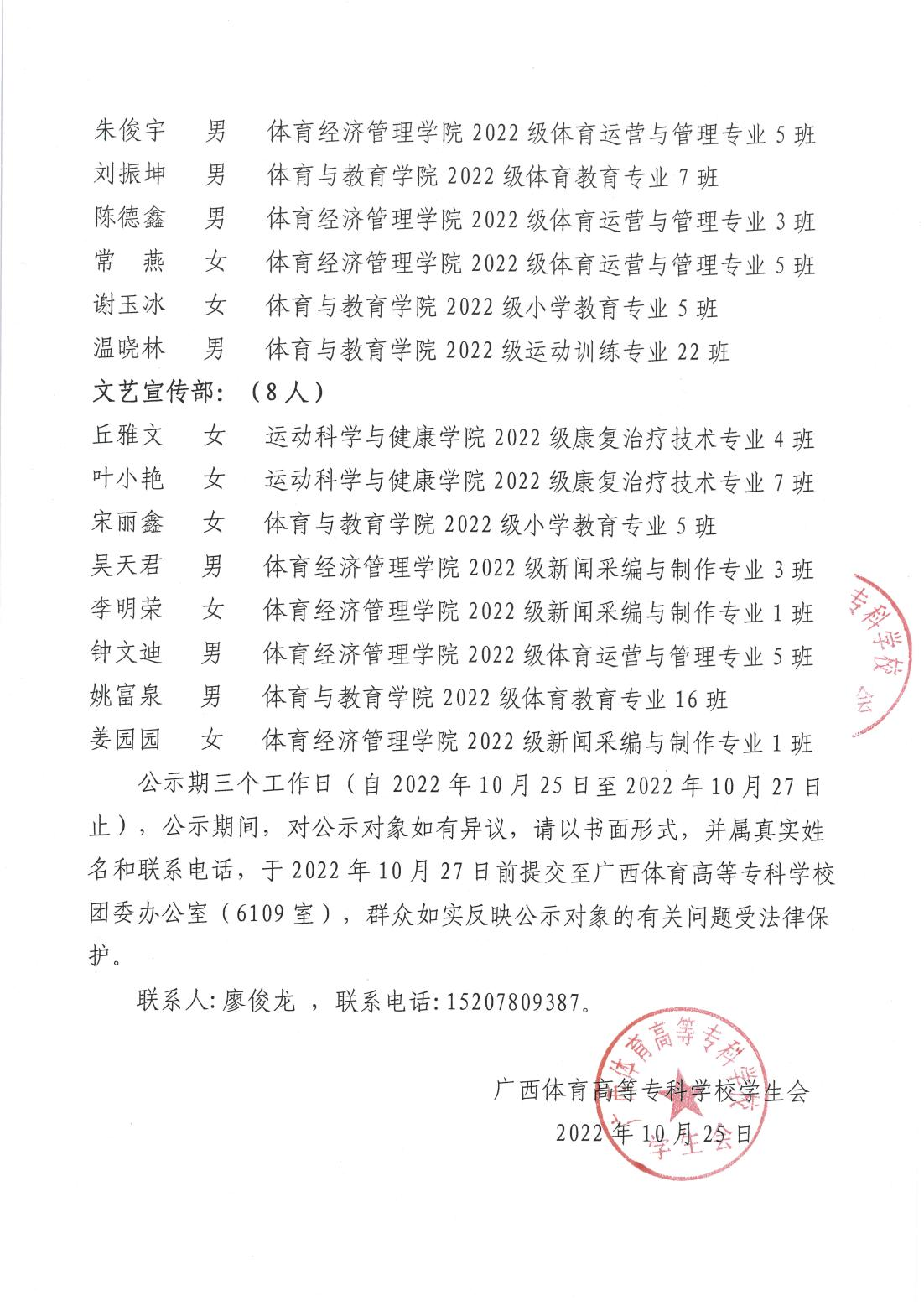 关于爱体育电子官方网站第二十九届学生会志愿者名单的公示