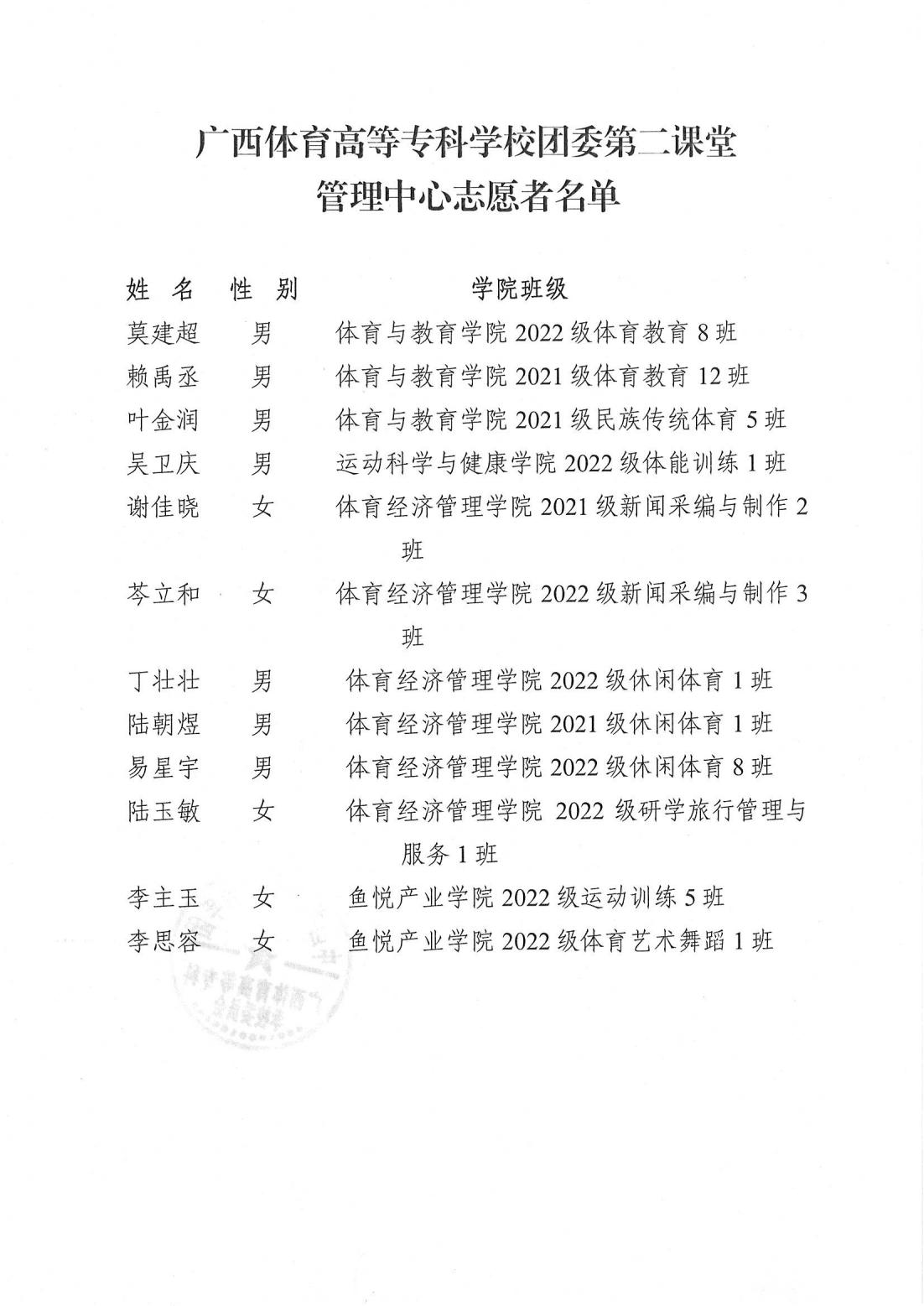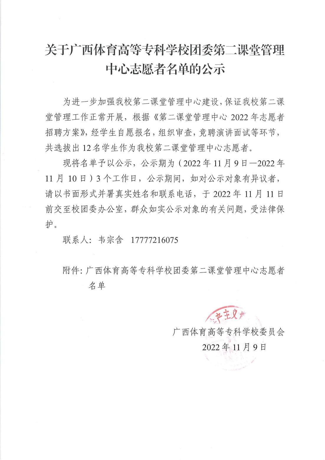 关于爱体育电子官方网站团委第二课堂管理中心志愿者名单的公示