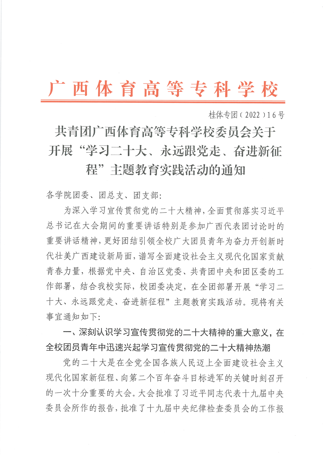 共青团爱体育电子官方网站委员会关于开展“学习二十大、永远跟党走、奋进新征程”主题教育实践活动的通知