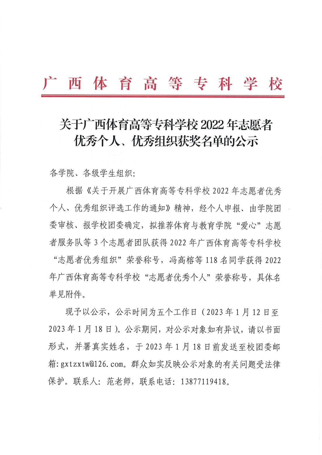 关于爱体育电子官方网站2022年志愿者优秀个人、优秀组织获奖名单的公示