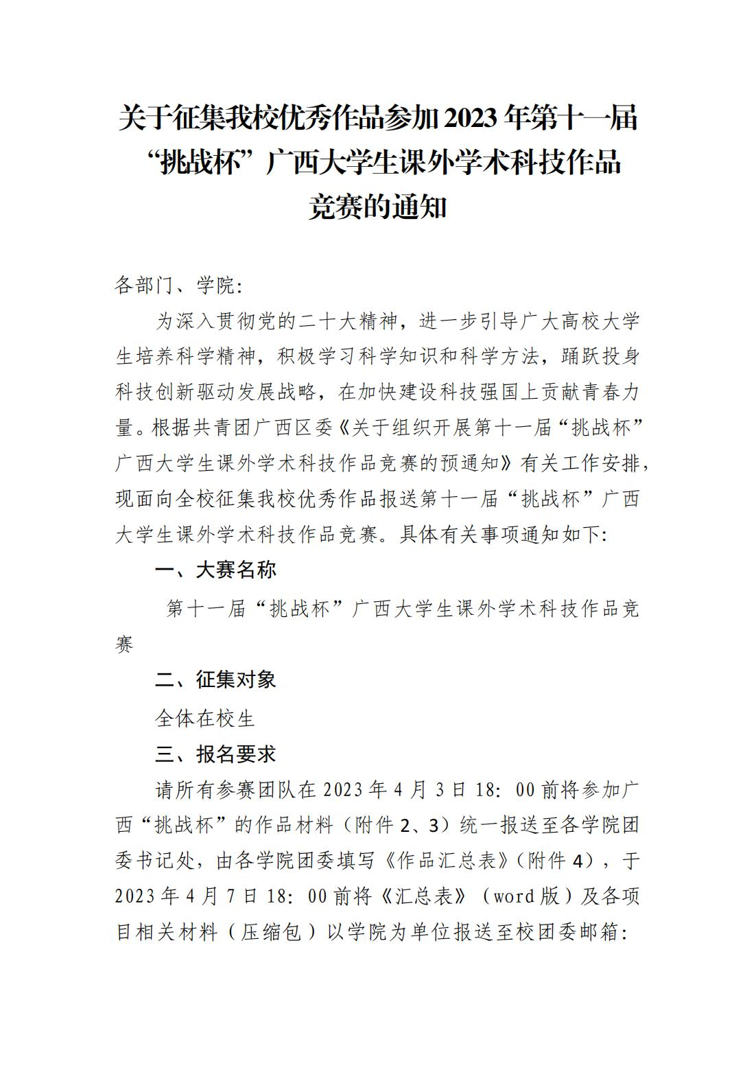 关于征集爱体育电子官方网站优秀作品参加2023年第十一届“挑战杯”广西课外学术科技作品竞赛的通知