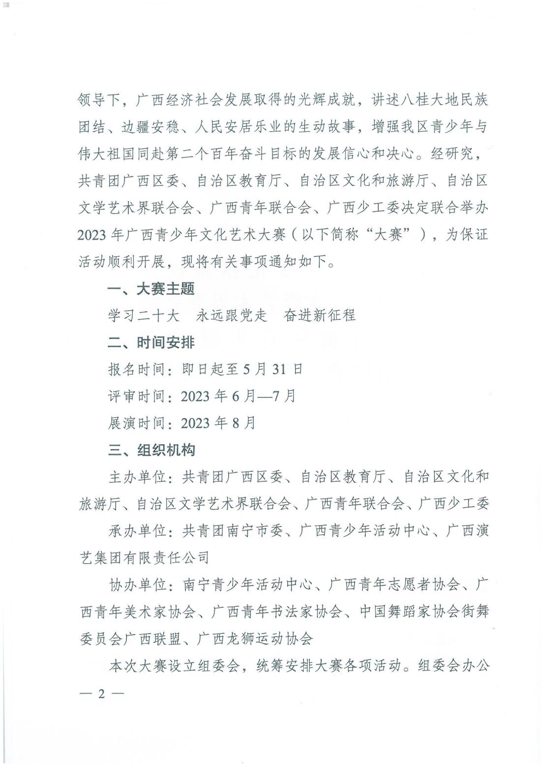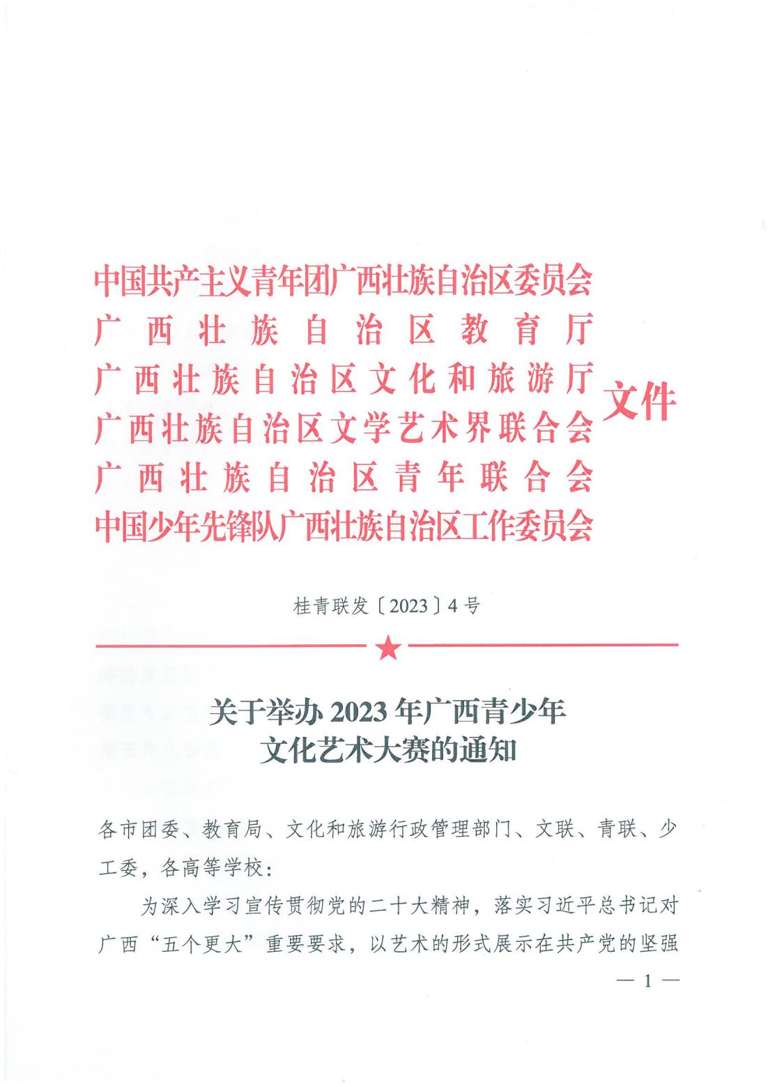 附件1:桂青联发〔2023〕4号中国共产主义青年团广西壮族自治区委员会等六部门关于举办2023年广西青少年文化艺术大赛的通知.pdf