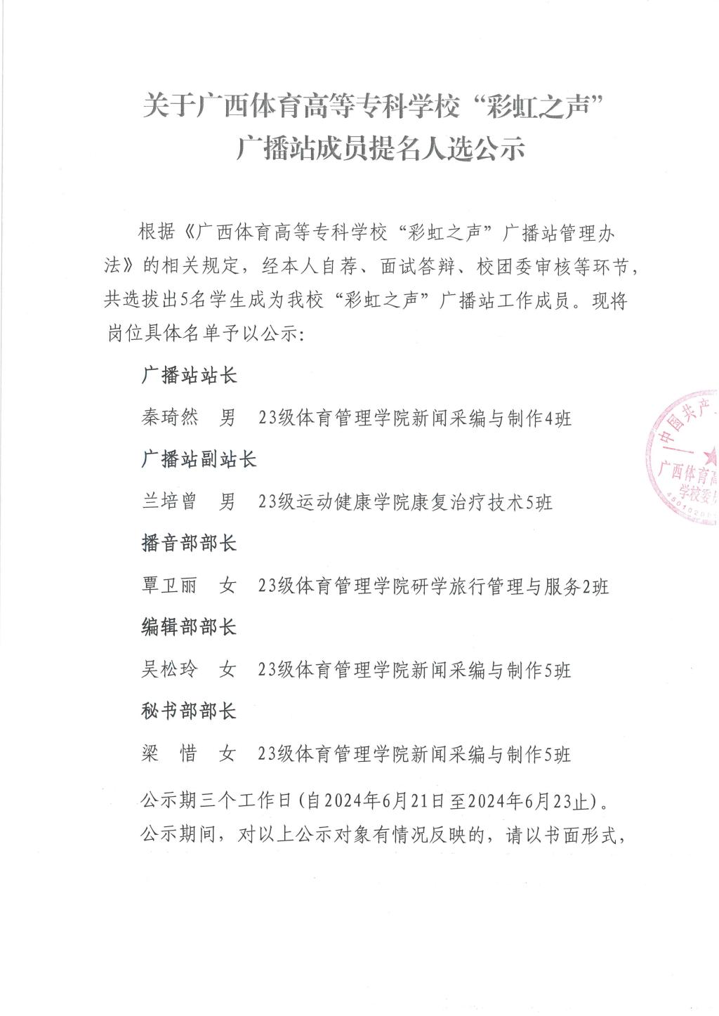 关于爱体育电子官方网站“彩虹之声”广播站成员提名人选公示