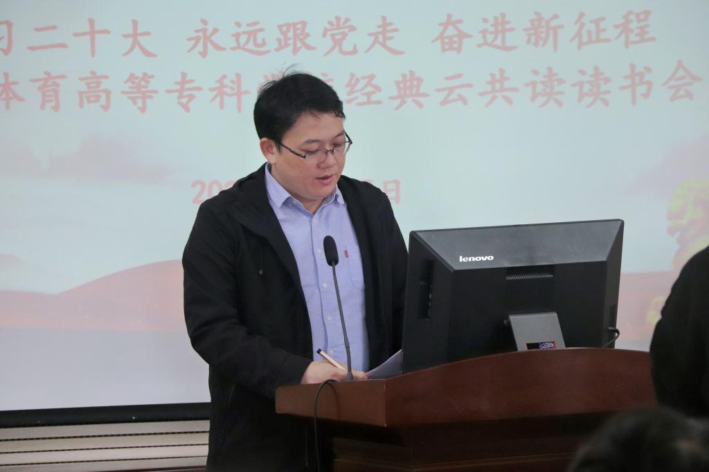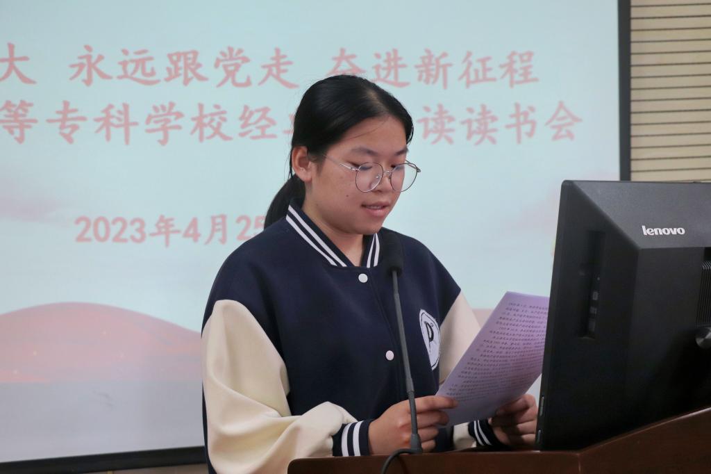 何培书记、韦宛辰副书记分别在两个会场带领同学们齐声朗读《高举中国特色社会主义伟大旗帜——在中国共产党第二十次全国代表大会上的报告》,“两岸同胞血脉相连,是血浓于水的一家人!”、“祖国完全统一一定要实现,也一定能够实现!”同学们振聋发聩、掷地有声的朗读充分展现了体专青年在国家统一、民族复兴的征程中坚定的立场和意志。