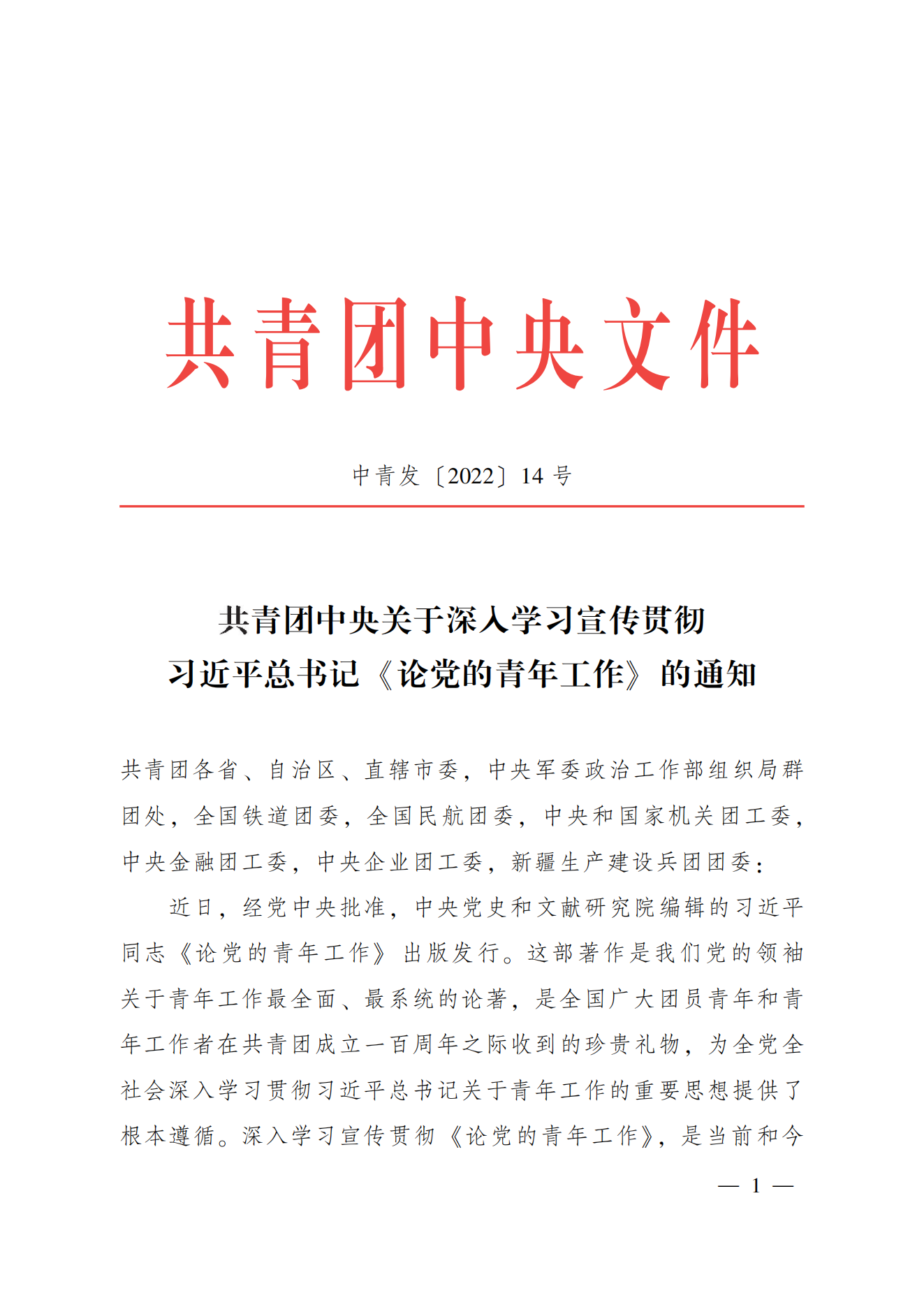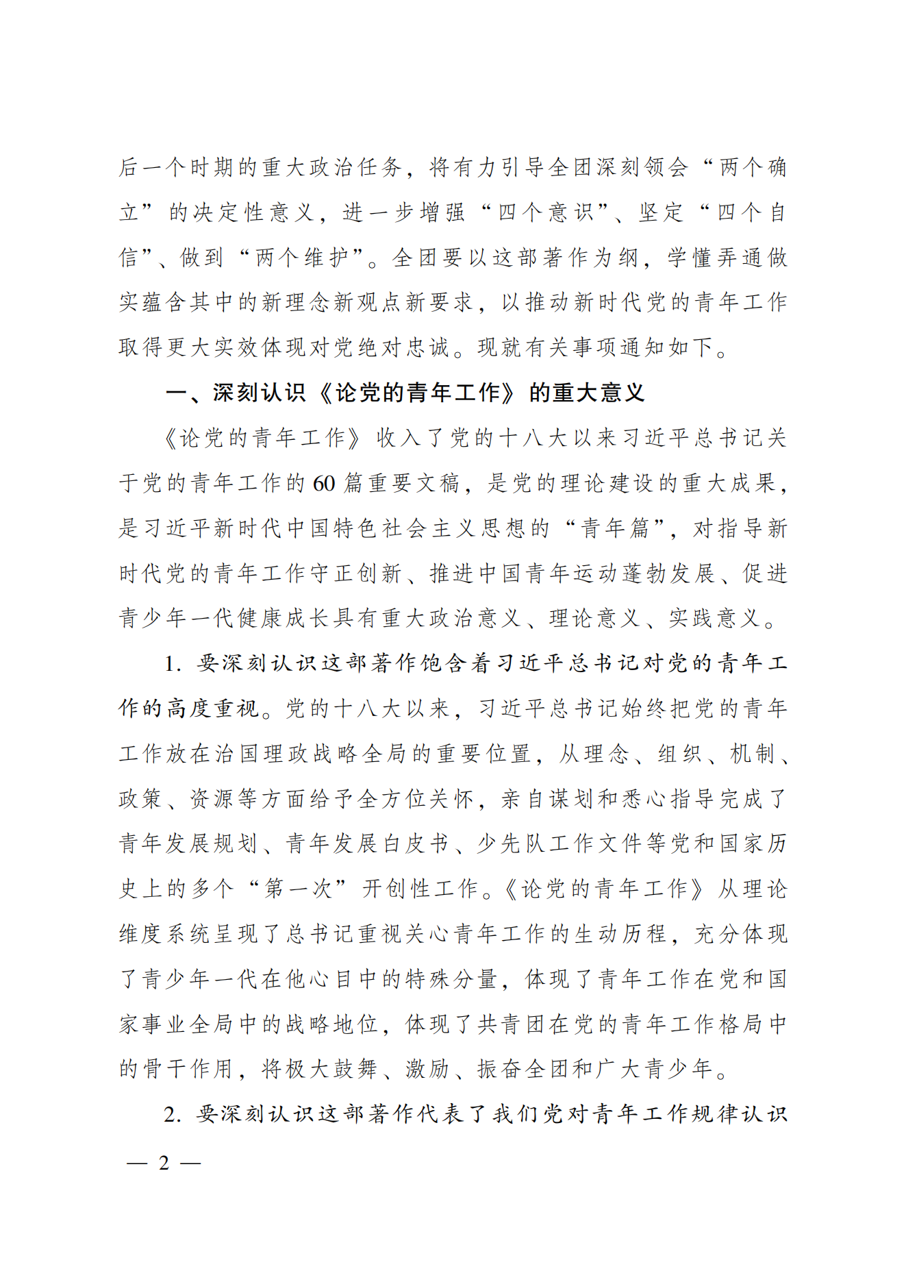 共青团中央关于深入学习宣传贯彻习近平总书记《论党的青年工作》的通知.pdf