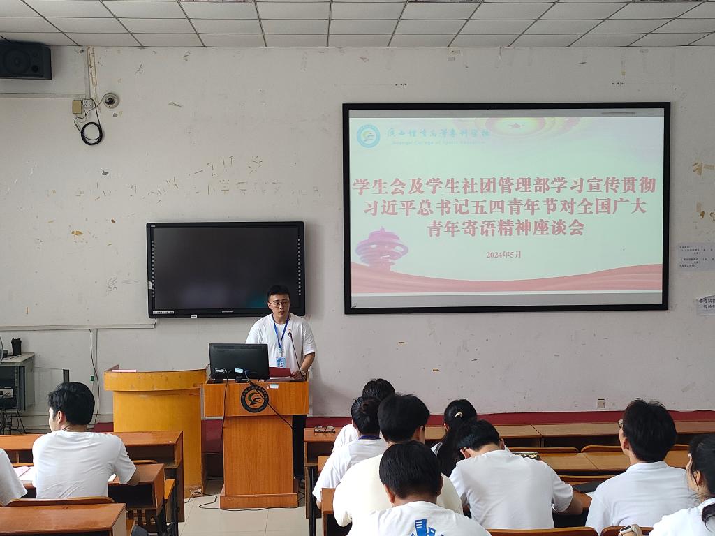 座谈会上,首先由校学生会主席团成员宁艳梅领学《关于深入学习宣传贯彻习近平总书记五四青年节对全国广大青年寄语精神的通知》。随后各学院学生会工作人员结合自身的学习和工作进行了讨论和发言。