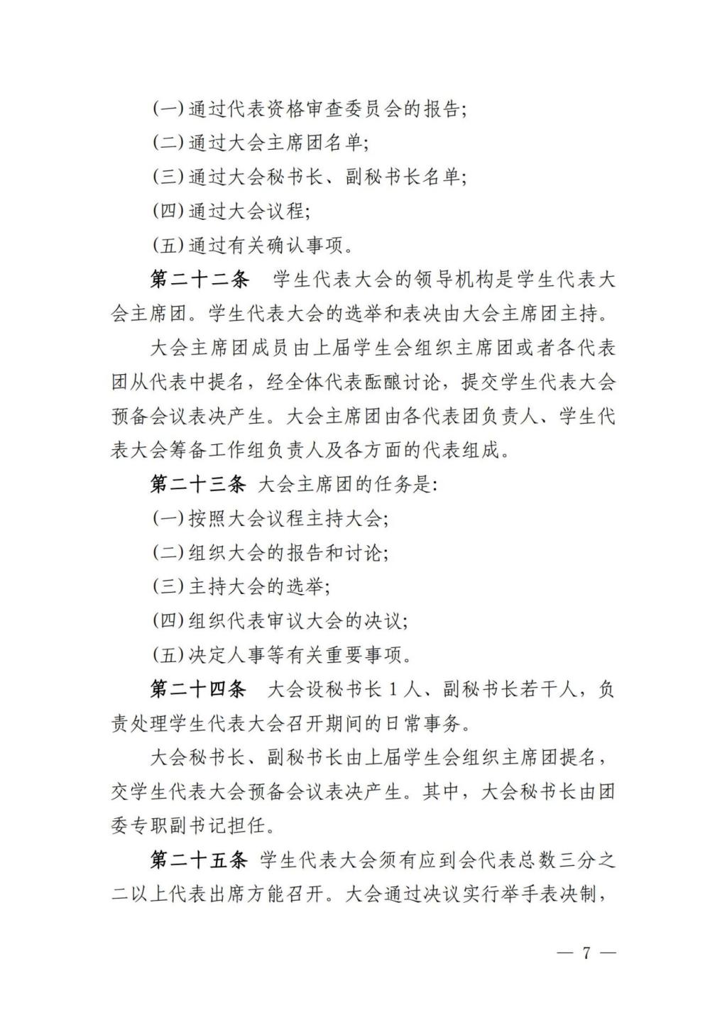 (七)讨论和决定应由学代会决定的其他重大事项等。