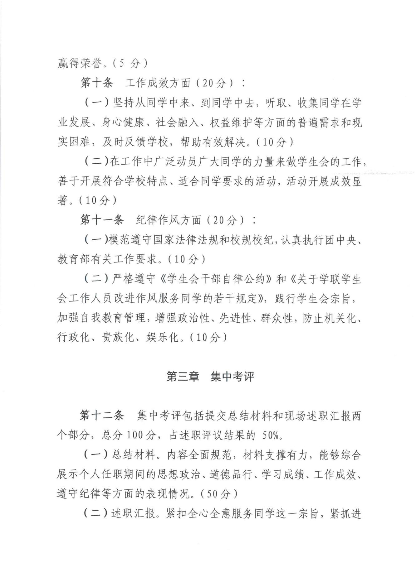 (六)校学生会主席团成员和工作部门成员每学期向评议会述职,评议会以学生代表为主,爱体育(中国)党委学生工作部、爱体育(中国)团委等共同参与。