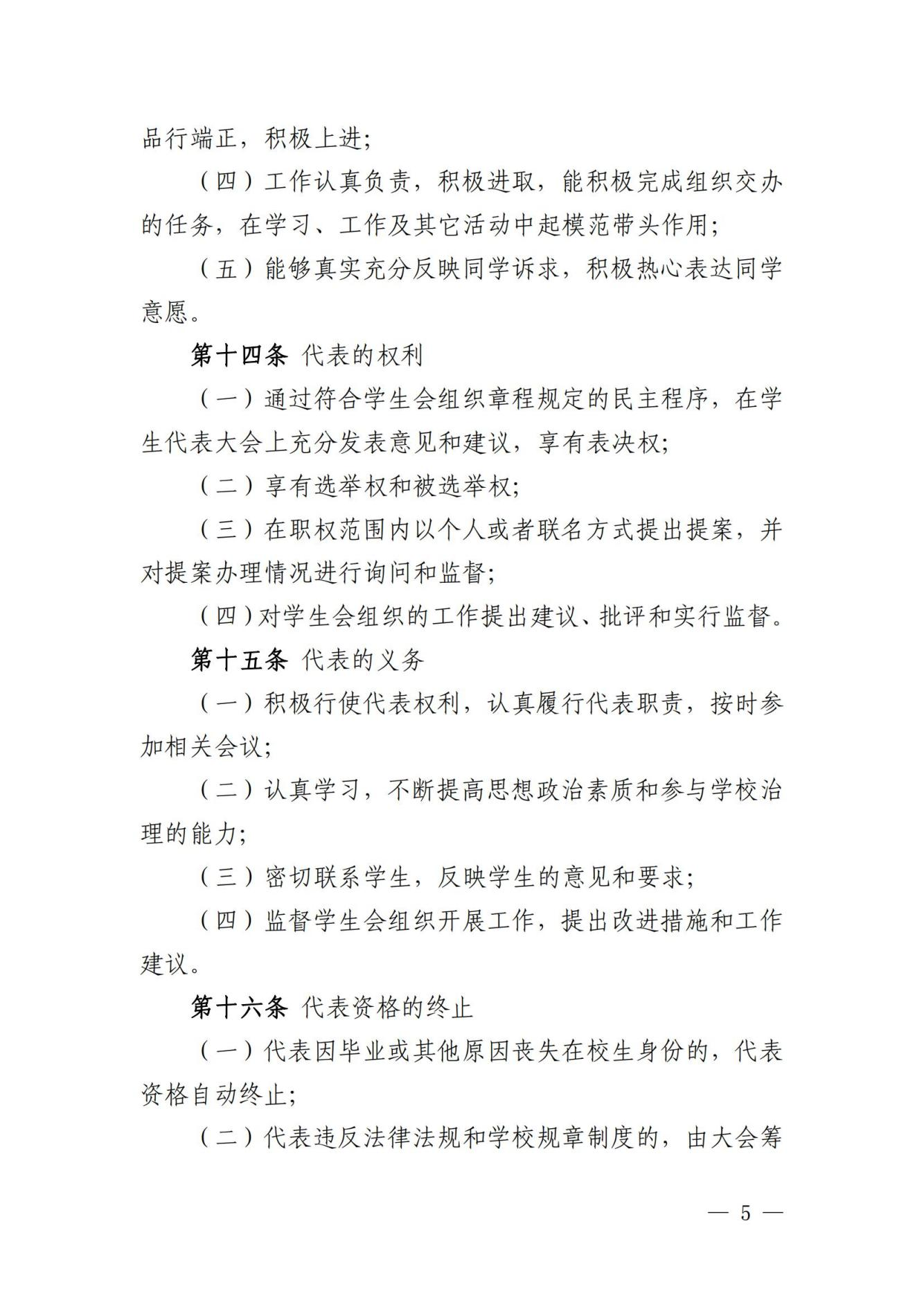 (五)校学生会工作人员应胸怀崇高理想,恪守学生本分,牢记服务宗旨,守纪律、讲原则、作表率;