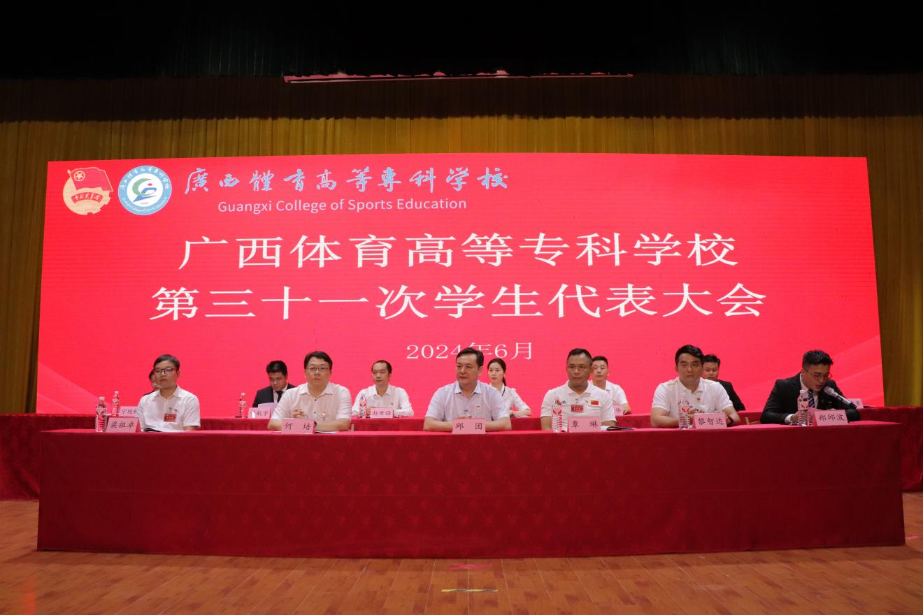 2024年6月12日,爱体育电子官方网站第三十一次学生代表大会在长岗校区瑞兴楼演播厅召开。爱体育(中国)党委副书记邱团、党政办公室(党委统战部)主任(部长)学工与招生就业处处长覃琳、爱体育(中国)团委书记何培、体育管理学院党总支书记黎智达、各学院党总支副书记、团委书记以及255名学生代表共同出席本次大会。大会由第三十届学生会主席团成员郑邱波主持。