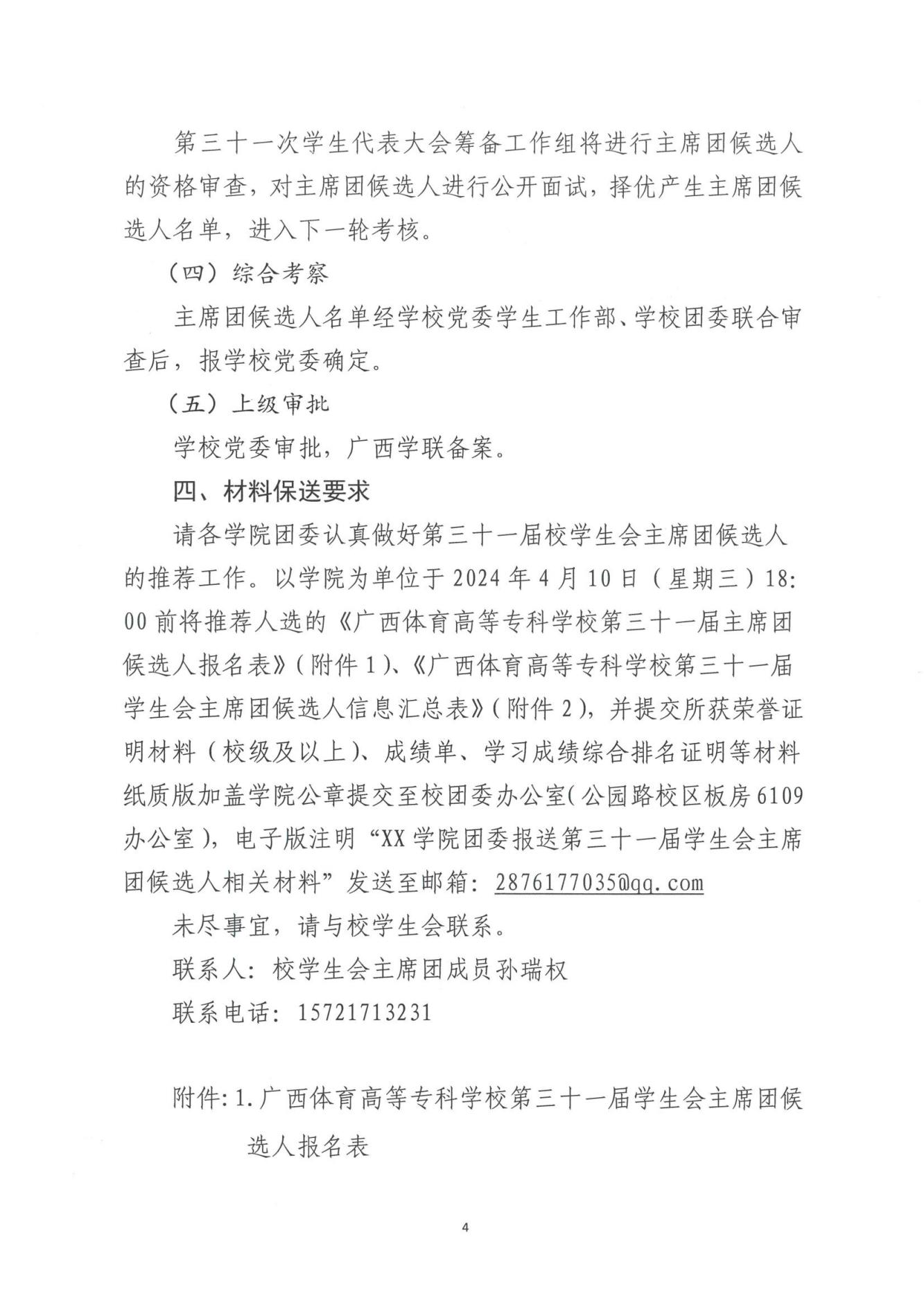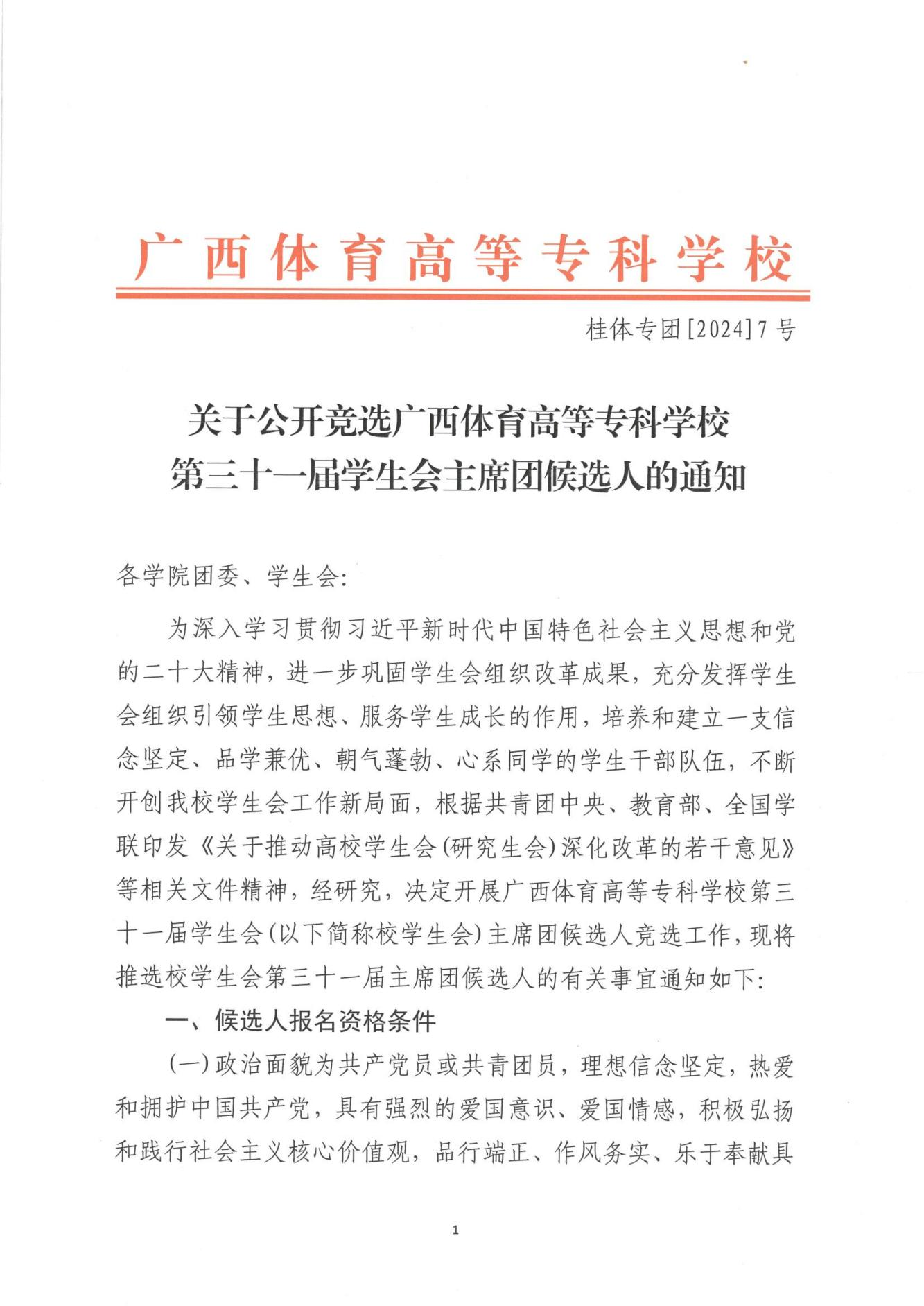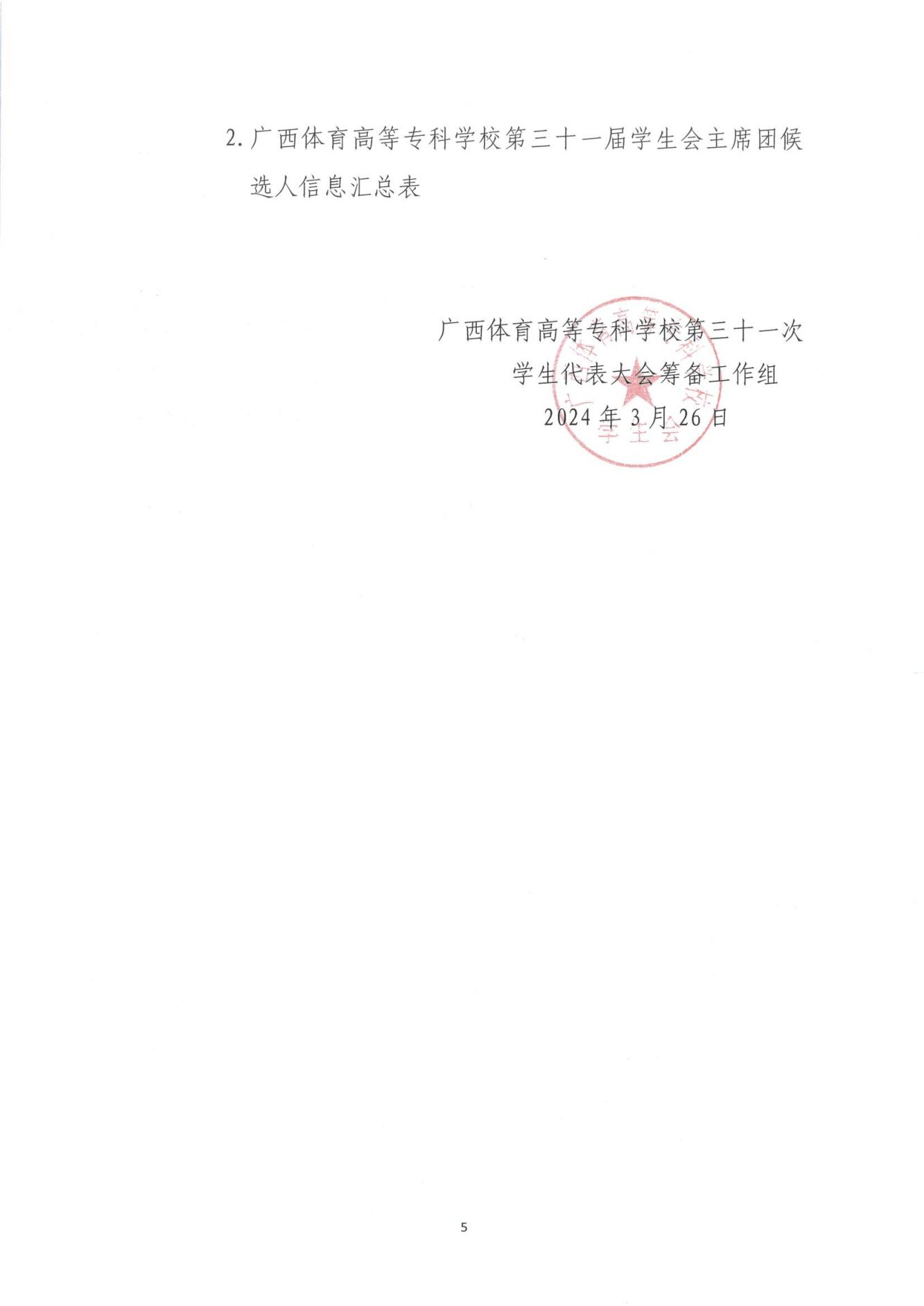 五、关于公开竞选爱体育电子官方网站第三十一届学生会主席团候选人的通知