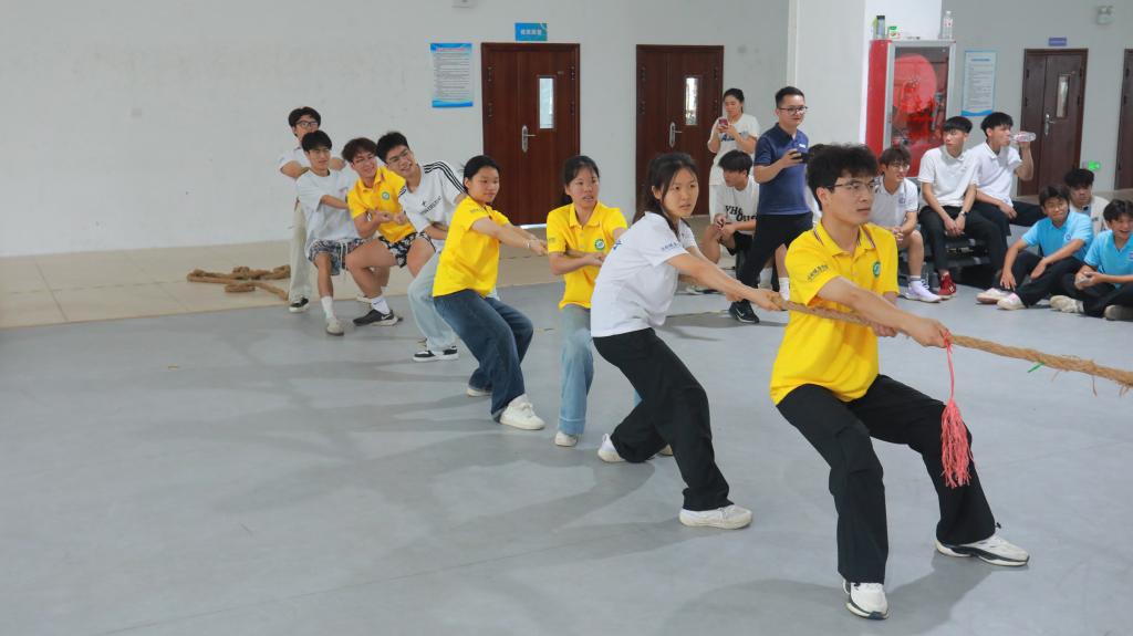 在“飞夺泸定桥・铁索竞速战”赛中,紧握麻绳,扎稳马步。一声哨响,双方队伍瞬间爆发出惊人的力量,“加油!加油!”的呐喊声整齐有力!